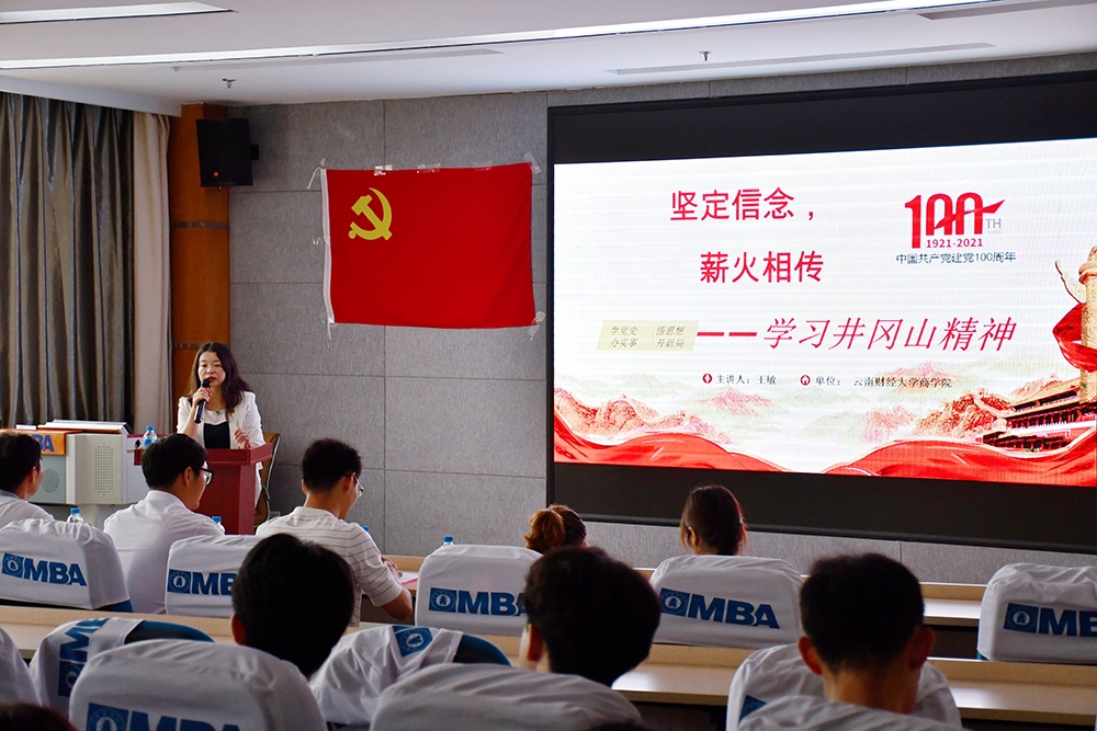 表彰结束后,王敏以“坚定信念 薪火相传:学习井冈山精神”为题开展党史学习教育专题党课。以井冈山精神内涵为支撑,以感受中国共产党的奋斗之路为驱动,以寻找共产党人的崇高追求为导向,教导学生党员要坚定信念,坚定共产主义理想,做真正的共产党人。