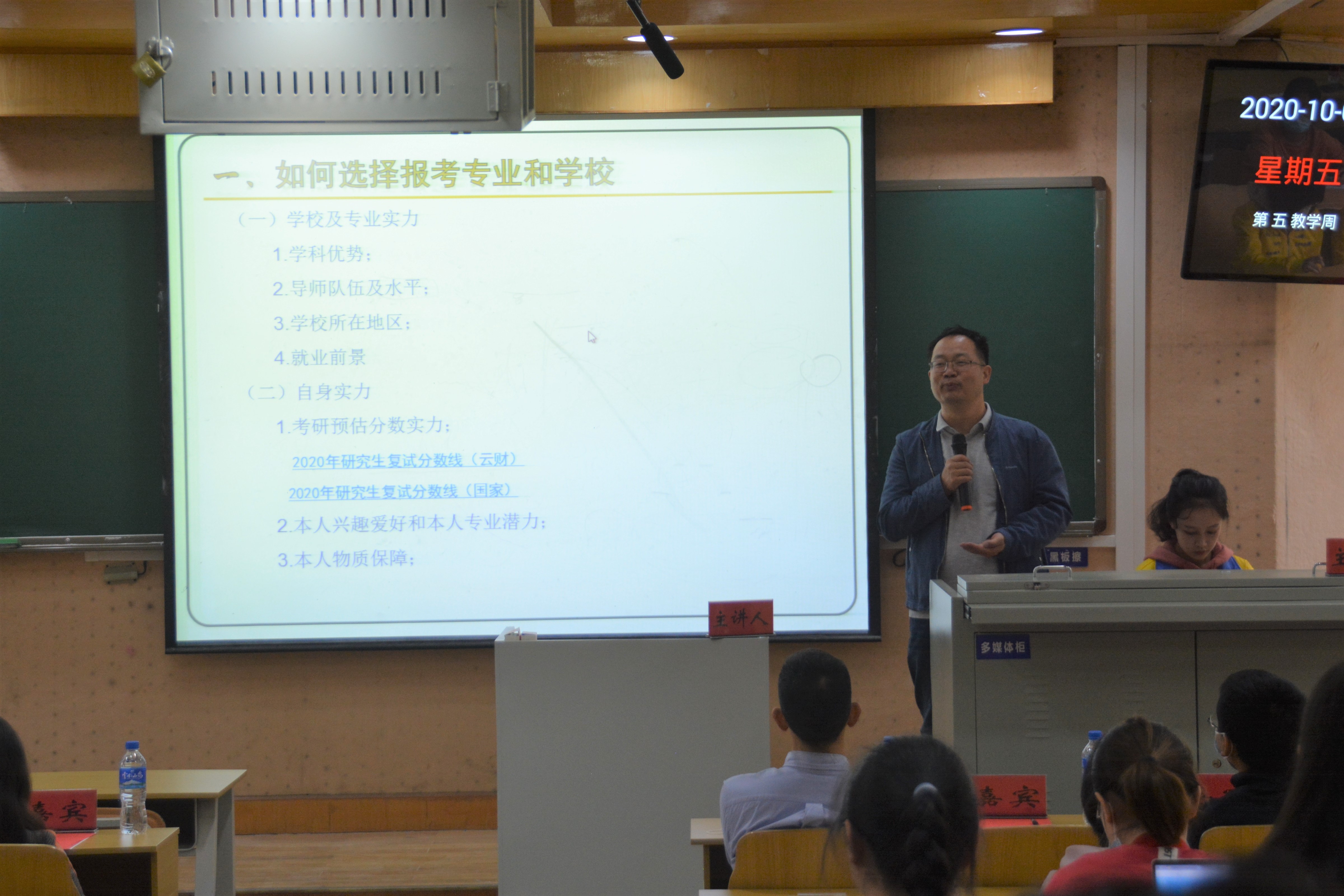 卢启程针对考研的基本信息以及考研形势作出分析,引导大家明确考研目标,并为给予同学们相关建议与指导。李德清就如何选择报考专业和学校进行了详细讲解,他建议同学们在选择时综合考虑院校、专业实力及自身实力。依据2020年十大买球官方网站考研分数线,李德清对不同的专业向同学们提出报考建议,并从学科优势、名师导师、奖助体系三个方面介绍了十大买球官方网站的优势和特色,希望大家能够通过考研,实现自己的人生目标。在最后现场答疑环节中,研究生处李云飞老师对同学们的考研困惑,作出了详细的解答。