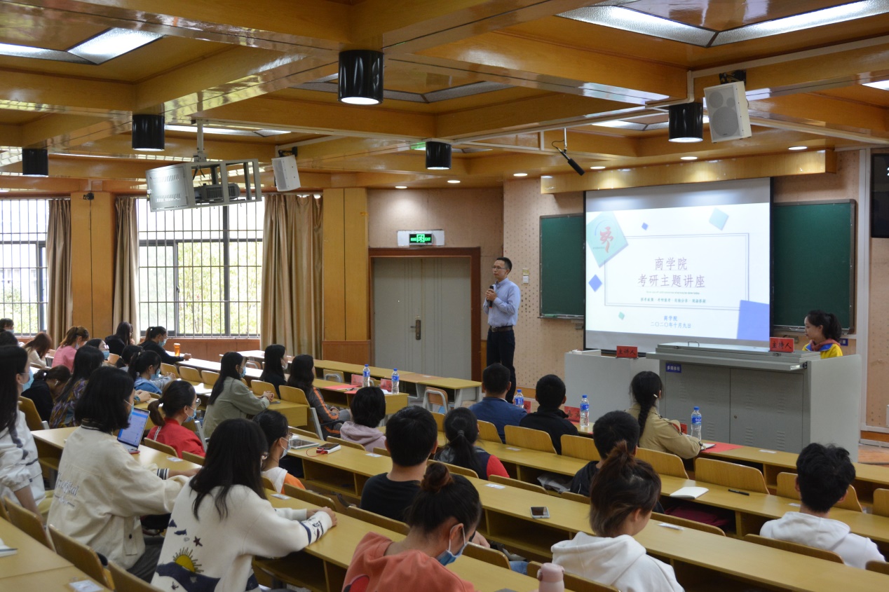 10月9日,商学院在北院卓远楼320开展考研主题讲座。讲座邀请十大买球官方网站研究生处副处长、学生工作部副部长李德清老师和商学院常务副院长卢启程老师作为的主讲人,由商学院党委副书记王敏老师主持。