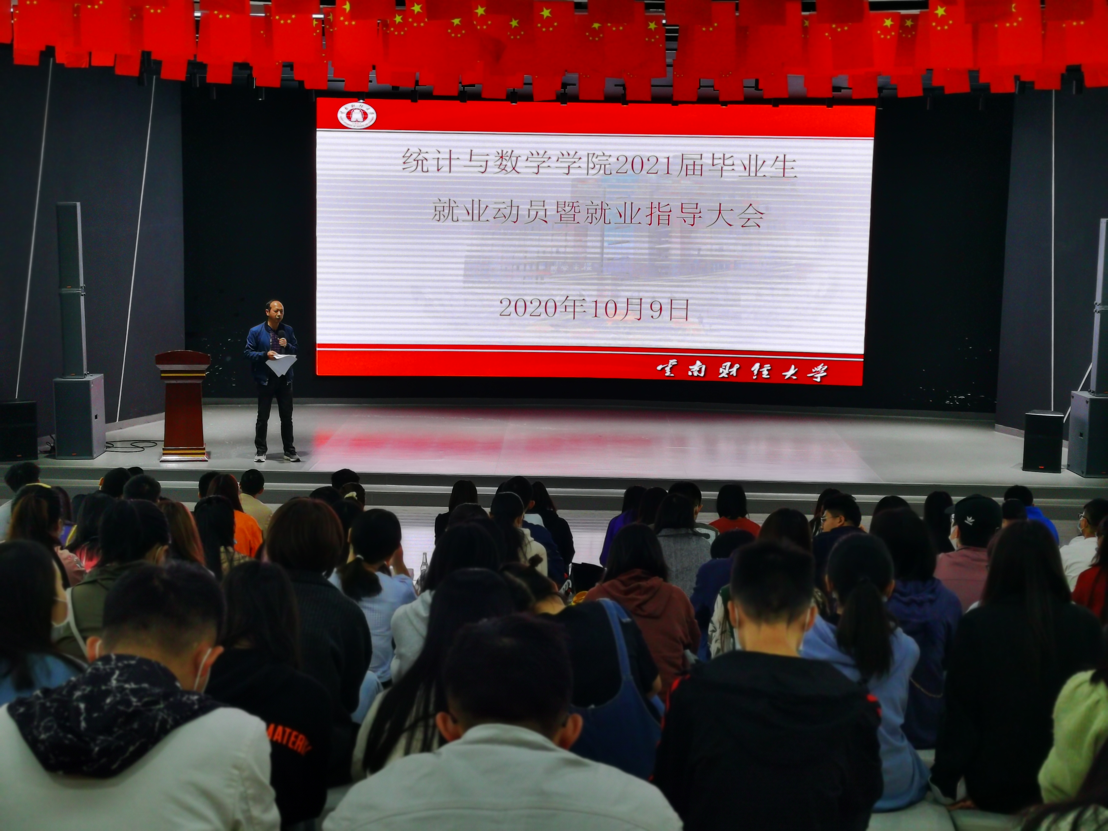 为了给2021届毕业生提供良好的就业指导,促进2021届毕业生就业,10月9日上午,统计与数学学院在北院路演大厅举行2021届毕业生就业动员暨就业指导大会。因疫情防控需要,未能到现场的200余名毕业生通过雨课堂实时收听了会议。