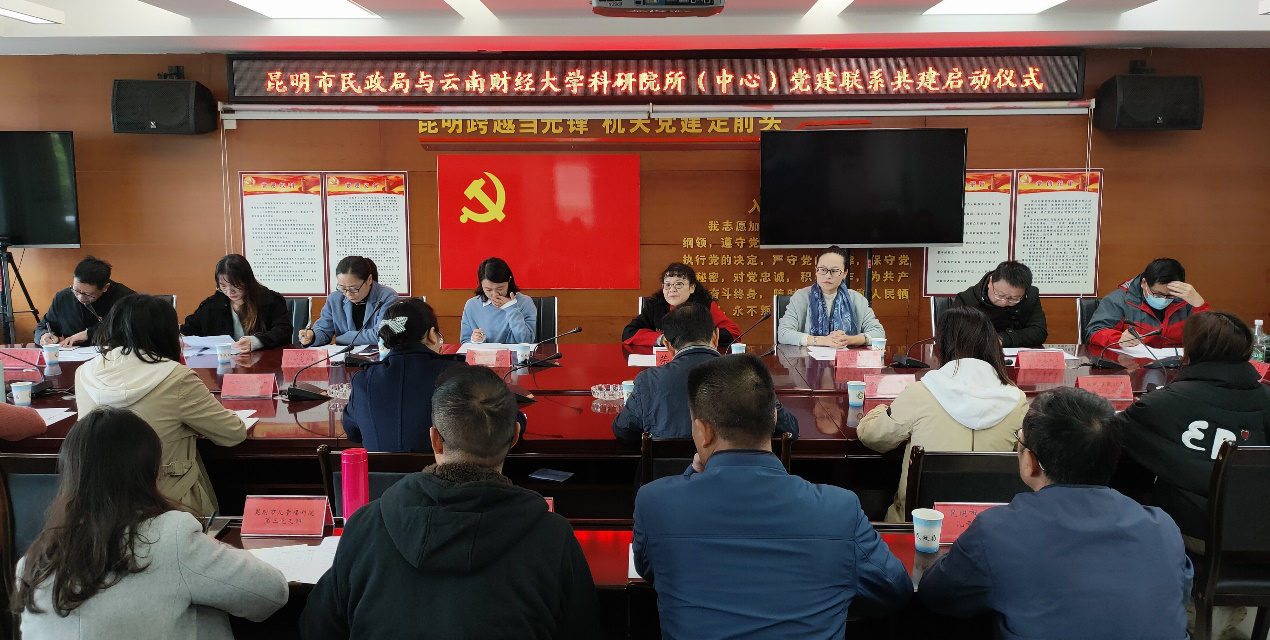为推进基层党组织建设工作,以共建促党建,实现党组织优势互补,增强党组织凝聚力、创造力和战斗力,10月22日,科研院所(中心)党委与昆明市民政局举行了党建工作“手拉手”结对共建启动仪式。