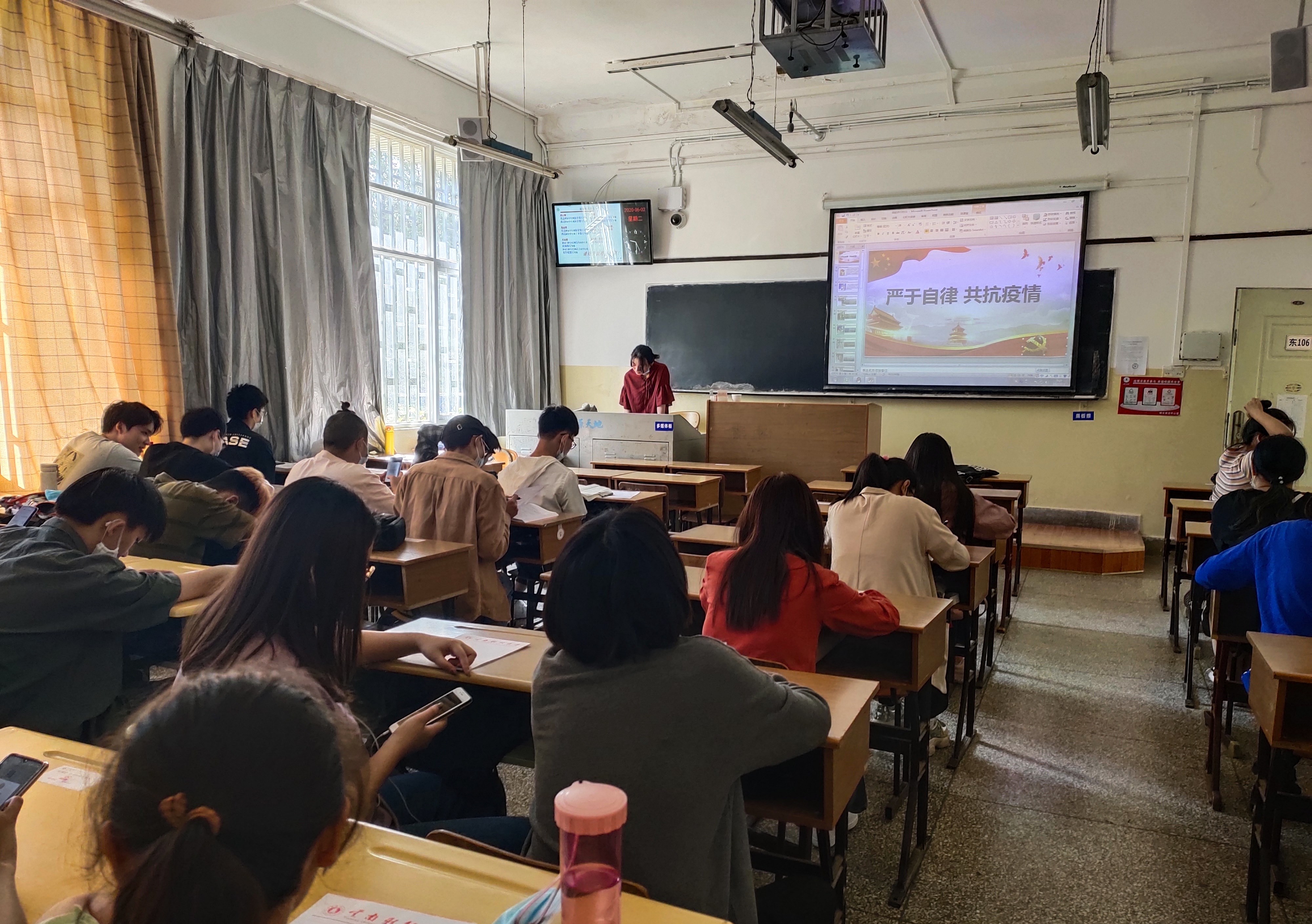 自律主题教育--严于律己,共抗疫情。5月29日至6月1日,各班级组织学生开展自律及应急处置主题教育,要求学生增强自律意识,做到不外出、不聚餐、不点外卖,坚持做好每日体温“三报告”。围绕学院疫情防控突发事件应急处置措施,学院引导学生关注个人身体健康,如遇同学体温异常,不惊慌,不传谣,主动向班主任报告,配合老师做好突发应急事件处理,共同维护校园安全秩序。
