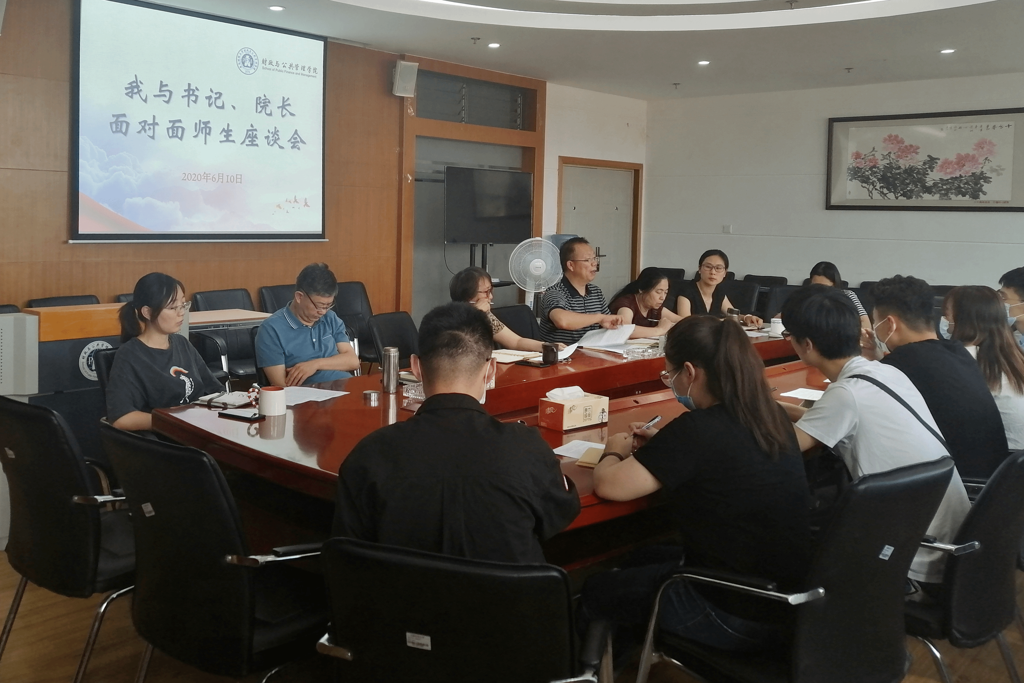 6月10日下午,财政与公共管理学院“我与书记、院长面对面”座谈会(第一场)在南院逸夫楼923会议室召开。院长李妍、党委书记朱文,副院长韩全芳和马国芳参加了会议,会议由党委副书记王晓芬主持。