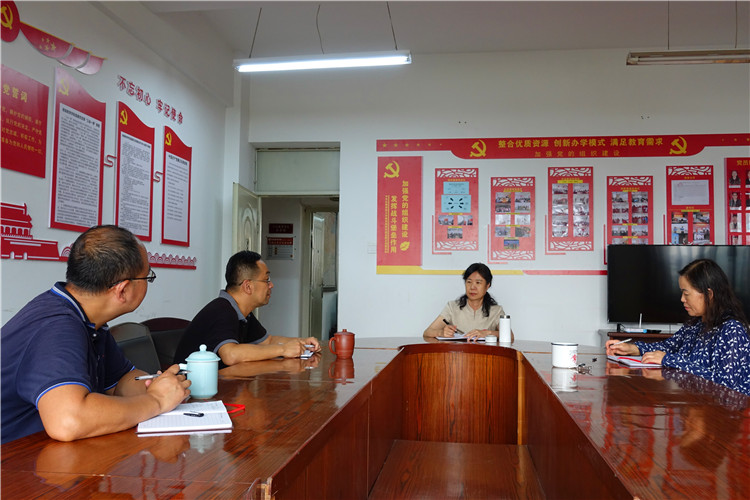 6月30日下午,校党委委员、副校长王晓萍到继续教育学院检查指导工作。学院直属党支部书记傅银鹰、院长张炯、副院长吴红刚参加检查并汇报相关工作。