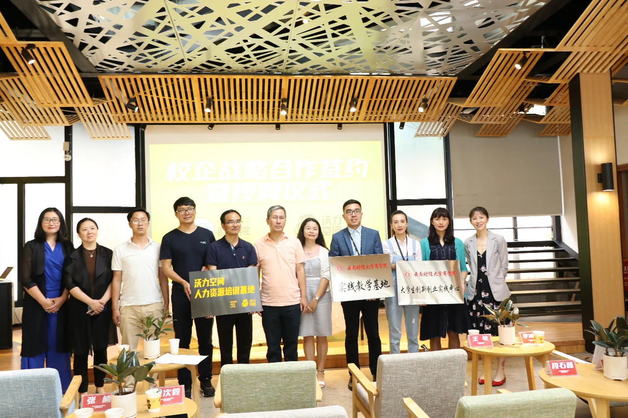 学院党委副书记王敏、学生管理科科长朱次毅、辅导员字惠云,沃力空间CEO助理李沁原、人力资源经理张楠、业务总监段石磊参加签约挂牌仪式。
