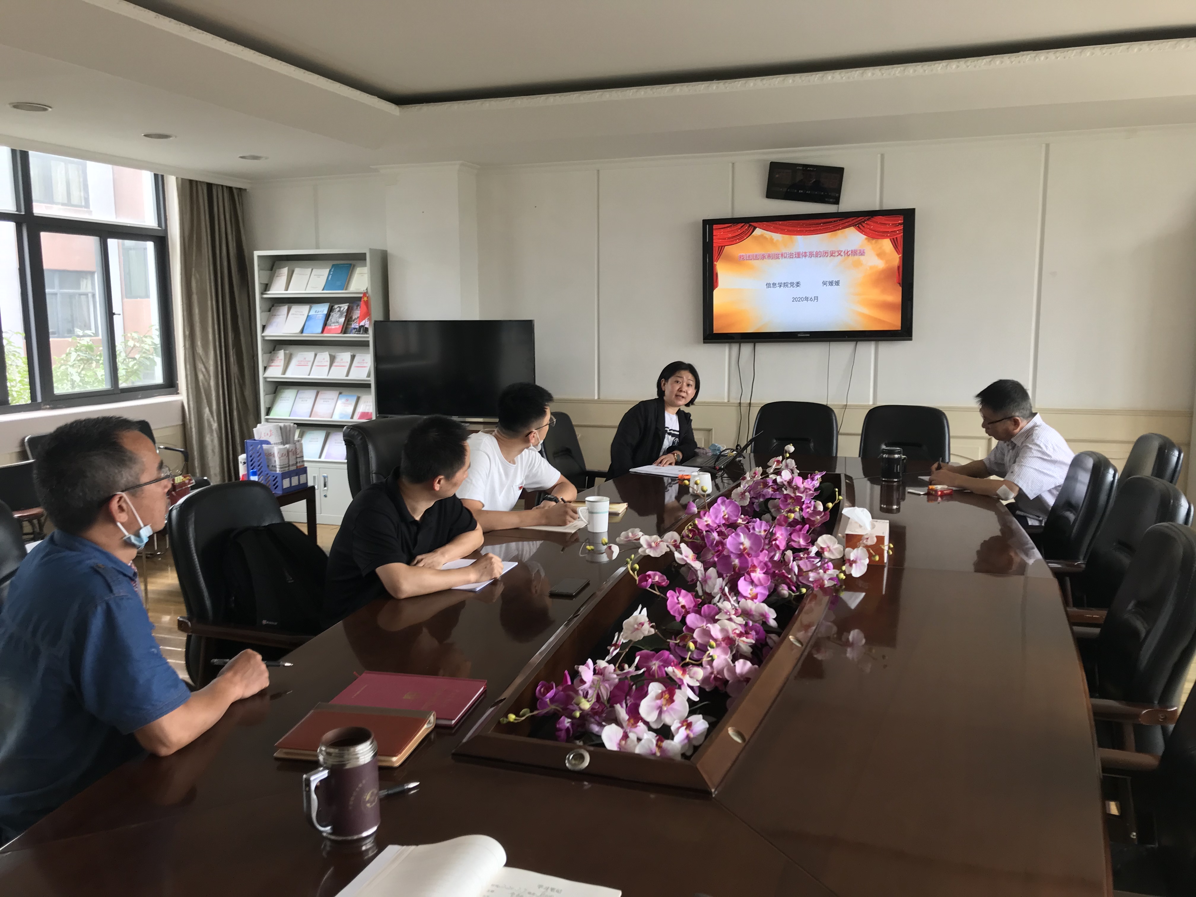 7月7日,信息学院在学院401会议室开展以“我国国家制度和治理体系的历史文化根基”为主题的党委理论学习中心组专题学习。活动由院党委书记何媛媛主持,学院领导班子成员、党委委员参加。
