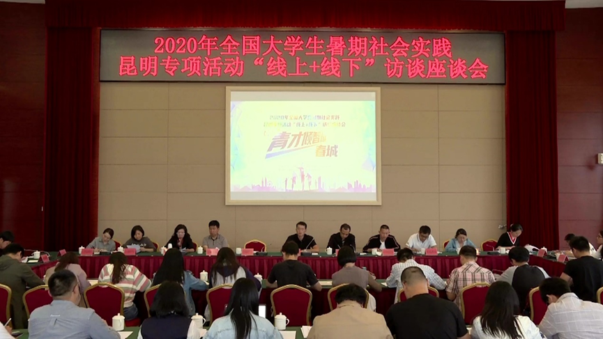 9月7日下午,2020年全国大学生暑期社会实践昆明专项活动“线上+线下”访谈座谈会在昆明会堂二楼10号会议室举行,同时进行网络同步直播。共青团昆明市委副书记林勤、昆明市改革发展研究中心主任张耀辉同志出席活动。买球会计学院云财会计青年助力昆明区域性国际中心城市建设调研队(以下简称“三下乡”团队)代表刘弘参加线下座谈会,其他队员参加线上座谈会。
