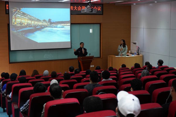 4月17日下午,学校举办国际学生交通安全专题教育讲座,昆明市交警支队第11大队民警王磊主讲,留校的39名国际学生和国际学生教育管理中心、海外学院部分教师参加。