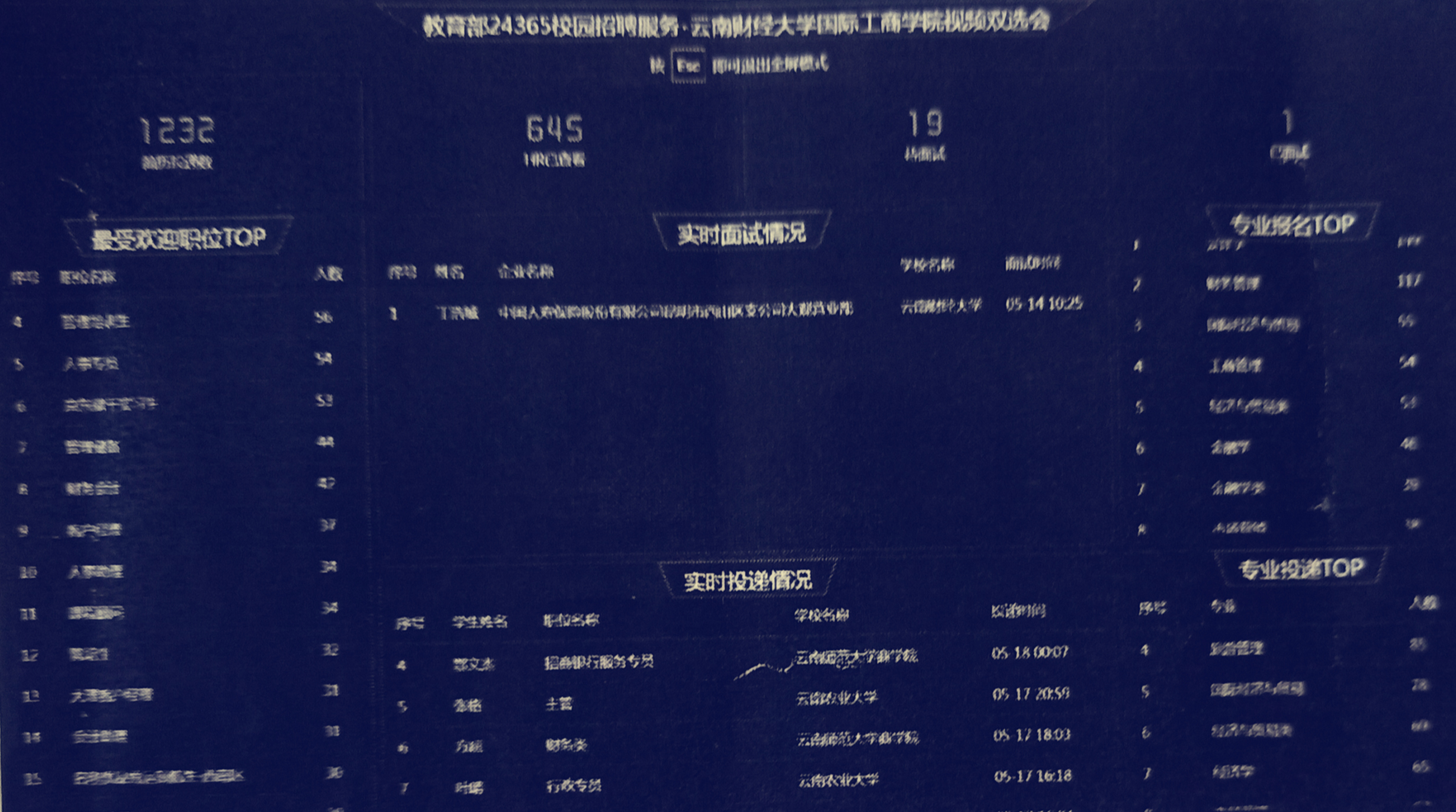 5月14日上午,国际工商学院举办2020届毕业生视频双选会。双选会共吸引61家优质用人单位参会,提供就业岗位194个,招聘需求5345人,共有1476名求职者报名参加,简历投递达1232份。