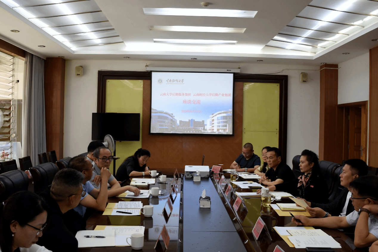 云南大学后勤服务集团副总经理张祥、刘晓寒及相关部门负责人,买球后勤产业集团副总经理姚宏逵及集团相关部门负责人参加座谈。