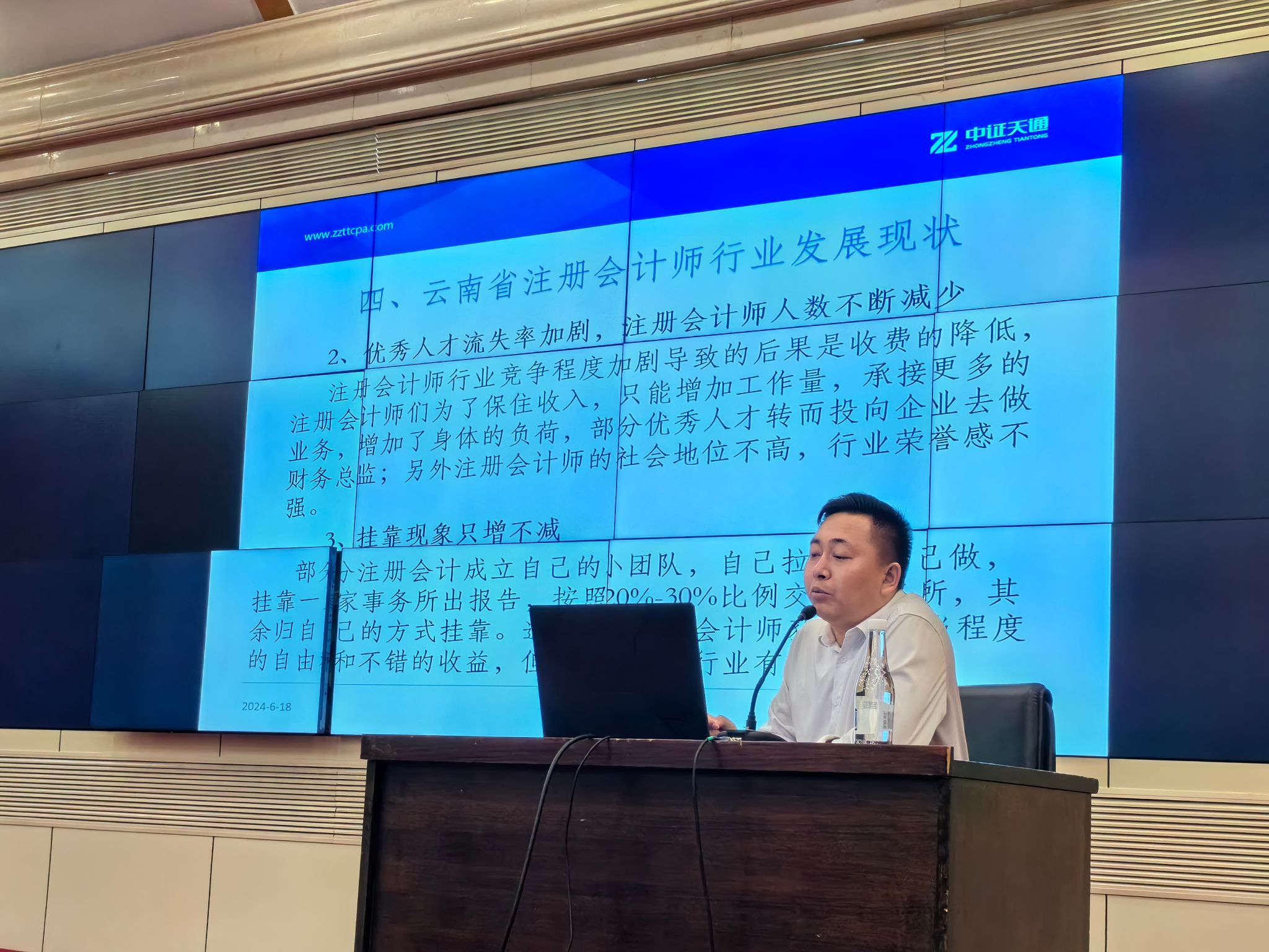 郭培培以“塑造未来,启航职场”为题,分别从会计师事务所的选择、事务所岗级设置和薪酬体系进行了分析,解读了云南省注册会计师行业现状。他表示,要增强机遇和风险意识,抓住行业机遇,应对挑战。他鼓励同学们投身实践,提升专业素养和综合能力,适应行业需求。