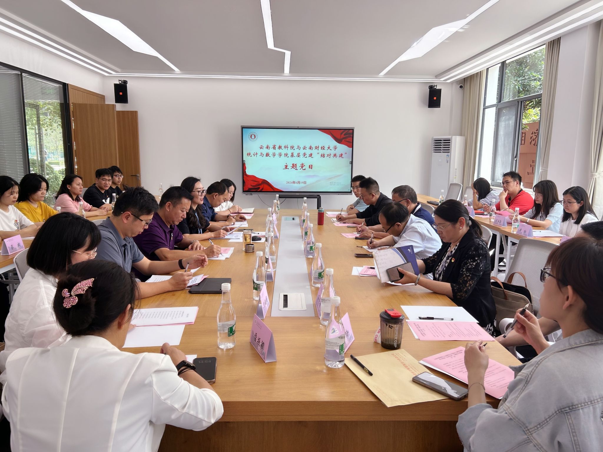 为推动党纪学习教育走深走实,探索基层党建工作新模式、搭建新平台,共同筑牢干事创业清正廉洁思想防线,6月19日,统计与数学学院与云南省教科院开展基层党建“结对共建”主题党日活动,学校党委副书记施仲军,云南省教科院院长、党总支书记方贵荣,副院长、第一党支部书记郑淑英参加,活动由统计与数学学院党委书记杨媛妮主持。