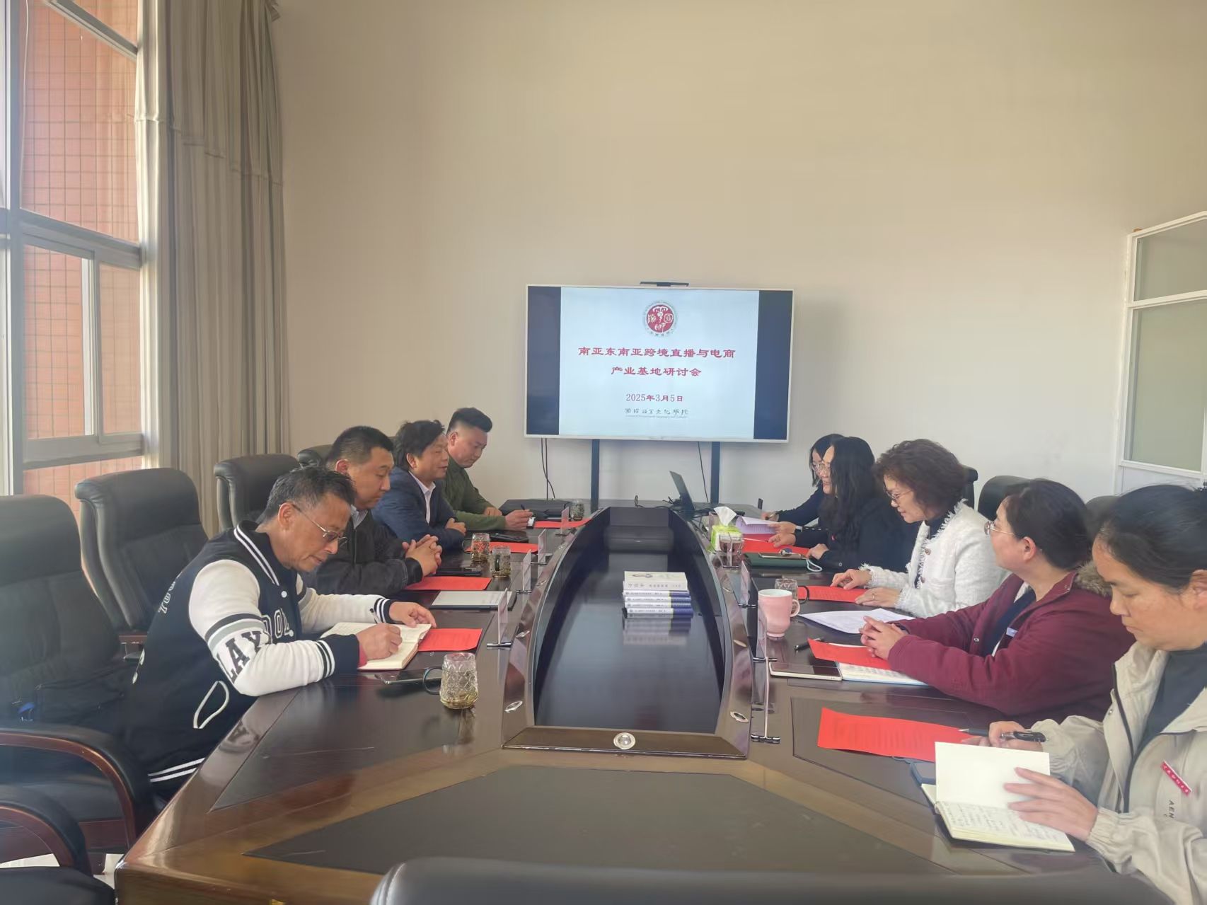 参会双方结合国际文化交流、跨境电商人才培养、学生实习就业、课题研究等方面,就依托南亚东南亚地区的地理优势和市场需求,积极推动跨境直播与电商产业的规范化、专业化建设等内容进行深入交流,初步达成共建“南亚东南亚跨境直播与电商产业基地”意愿。未来双方将通过资源共享、优势互补,创新人才培养模式,为区域数字经济发展和打造辐射南亚东南亚的跨境电商平台注入新动能。