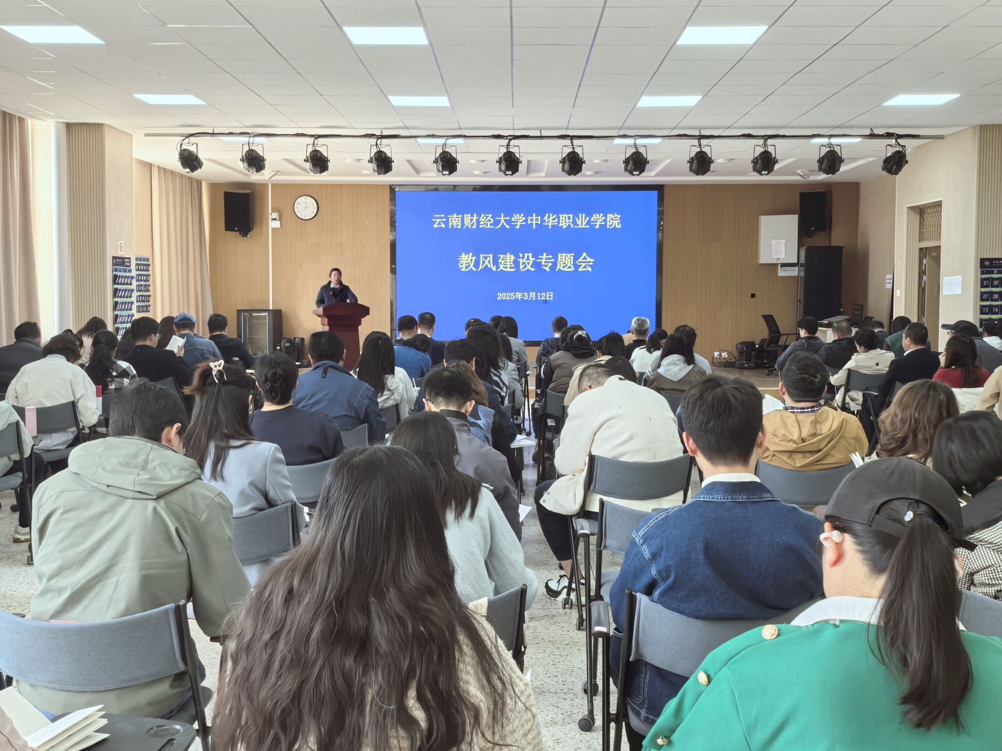 为持续提升课堂教学质量,深入推进“三风”建设,3月12日下午,中华职业学院在修远楼204会议室召开教风建设专题会。学院全体教职工参加会议。