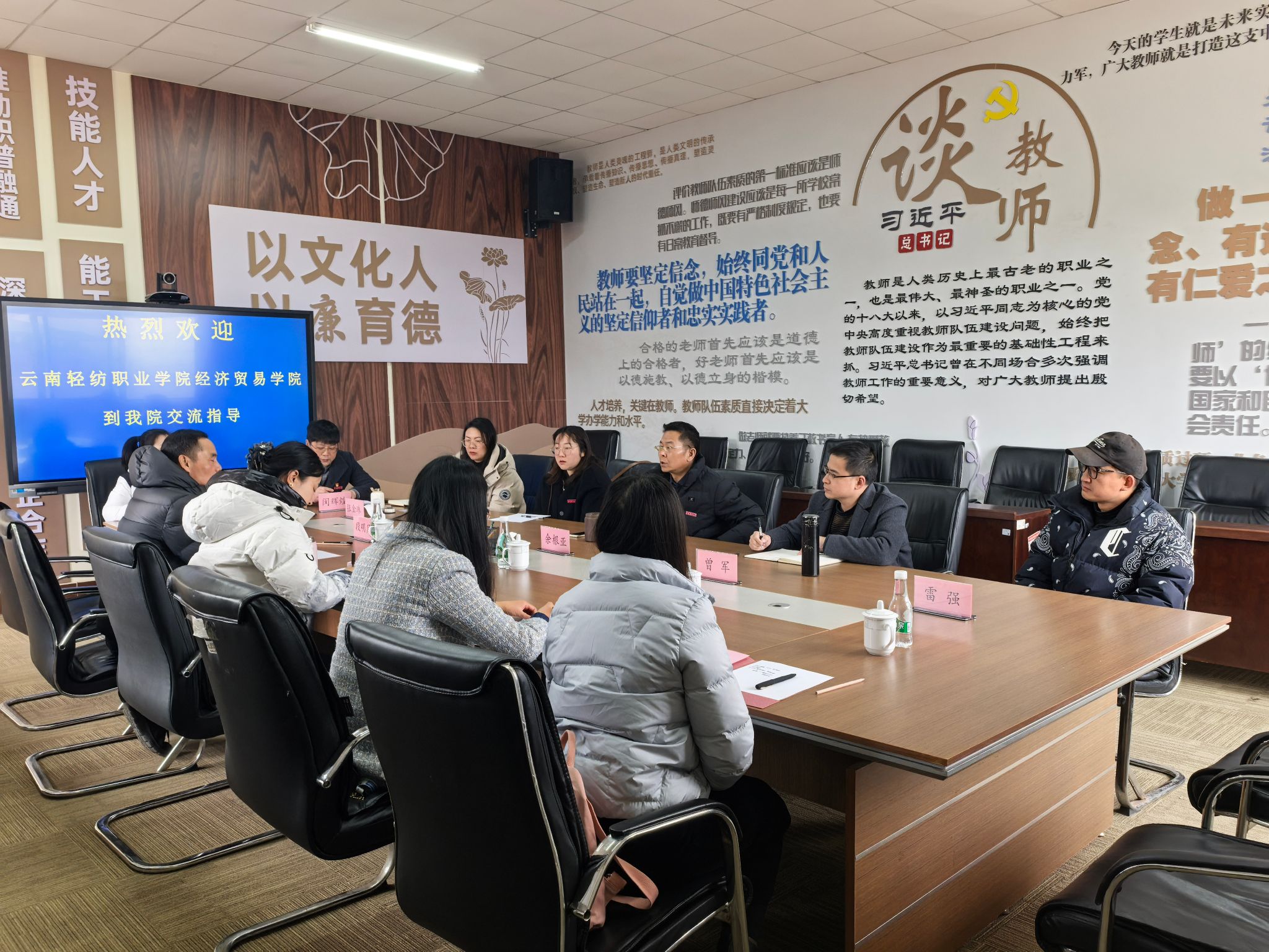 为积极响应教育部、云南省教育厅职业教育改革要求,进一步打通高职教育与本科教育的衔接通道,培养更多高素质技术技能人才,3月20日上午,云南轻纺职业学院经济贸易学院院长段明月、副院长雷英一行5人应邀到中华职业学院开展交流座谈。