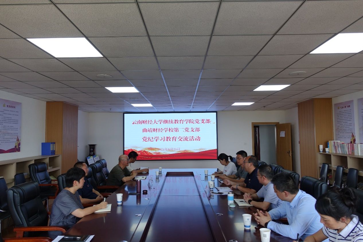两校与会人员共同观看了“清廉曲靖建设成果展示”情景剧《暴力之痛》《酒驾之祸》《诬告之恶》视频节目。双方围绕党纪学习教育的做法、经验、成效,以及如何在日常工作中更好地开展党纪教育进行了交流,同时就加强校外教学点建设、管理和招生、非学历培训等进行了深入探讨。