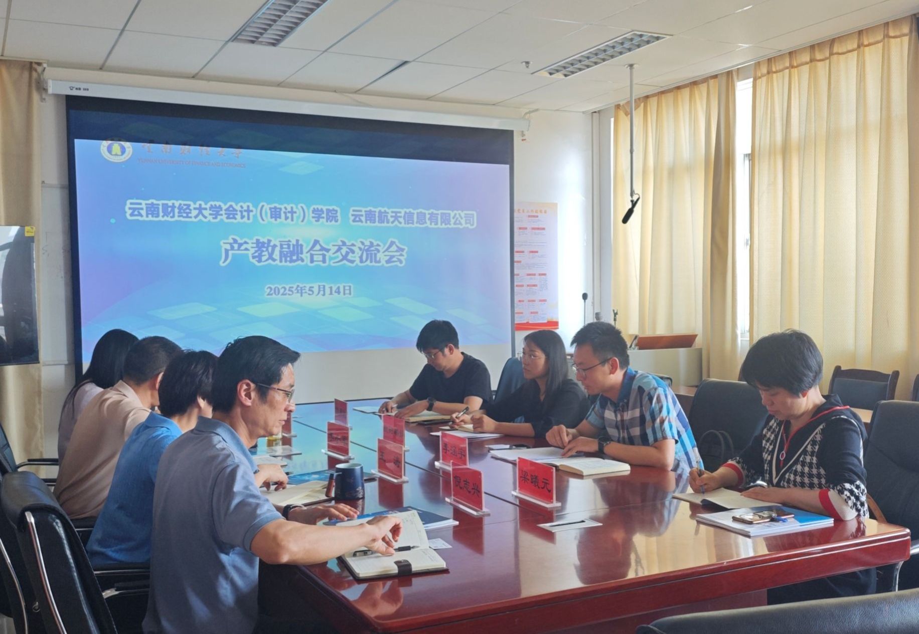 为进一步加强校企合作,深化产教融合,促进教育链与产业链的有机结合,5月14日,会计(审计)学院与云南航天信息有限公司在逸夫楼820举行产教融合交流会。云南航天信息有限公司副总经理李涵宇及业务骨干,会计(审计)学院院长李小军、党委副书记王涛、副院长胡耀丹及骨干教师倪志兴参会。