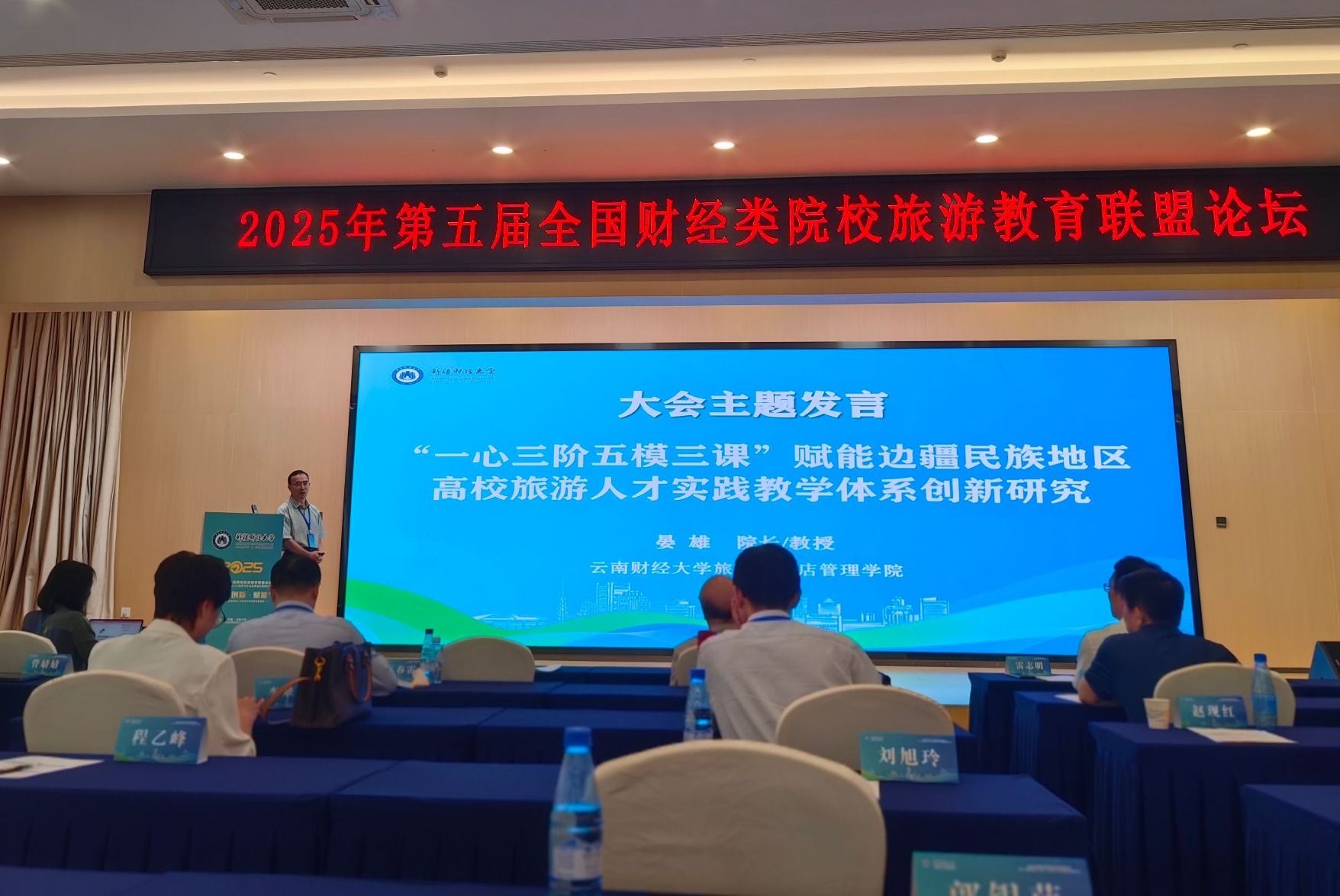 论坛上,晏雄作题为《“一心三阶五模三课”赋能边疆民族地区高校旅游人才实践教学体系创新研究》的主题发言,围绕边疆民族地区高校旅游人才培养体系的特色优势及创新范式展开交流,结合买球多维度实践育人体系、民族团结进步示范创建及“全空间、无国界”校企协同育人模式等分享了旅游教育领域的实践经验,为财经类院校旅游人才培养提供了新思路和新观点,引发与会者的广泛共鸣。