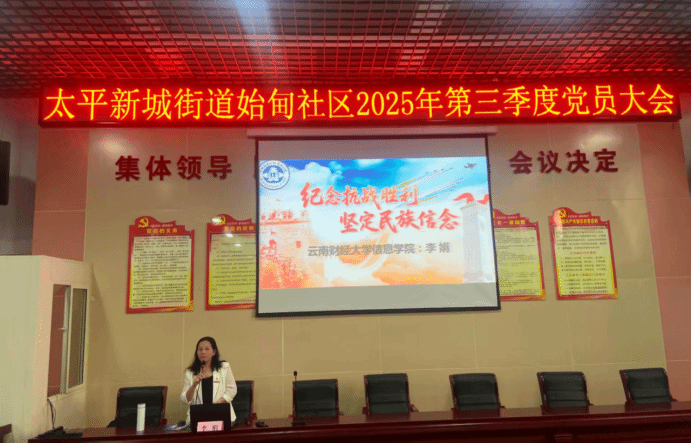 9月19日,信息学院党委与太平新城街道始甸社区开展党建共建活动,学院党委书记李娟以“纪念抗战胜利,坚定民族信念”为主题,为太平新城街道始甸社区全体党员讲授专题党课。