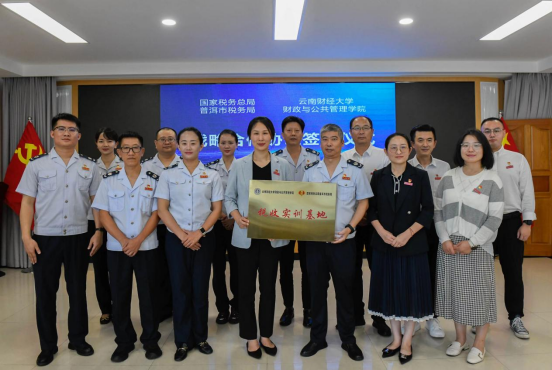 7月4日下午,国家税务总局普洱市税务局与财政与公共管理学院共建税收实训基地的合作签约仪式在普洱市税务局举行。普洱市税务局党委委员、副局长胡力凡,财政与公共管理学院党委副书记王晓芬、副院长和立道参加活动,会议由普洱市税务局征收管理科副科长商忠磊主持。
