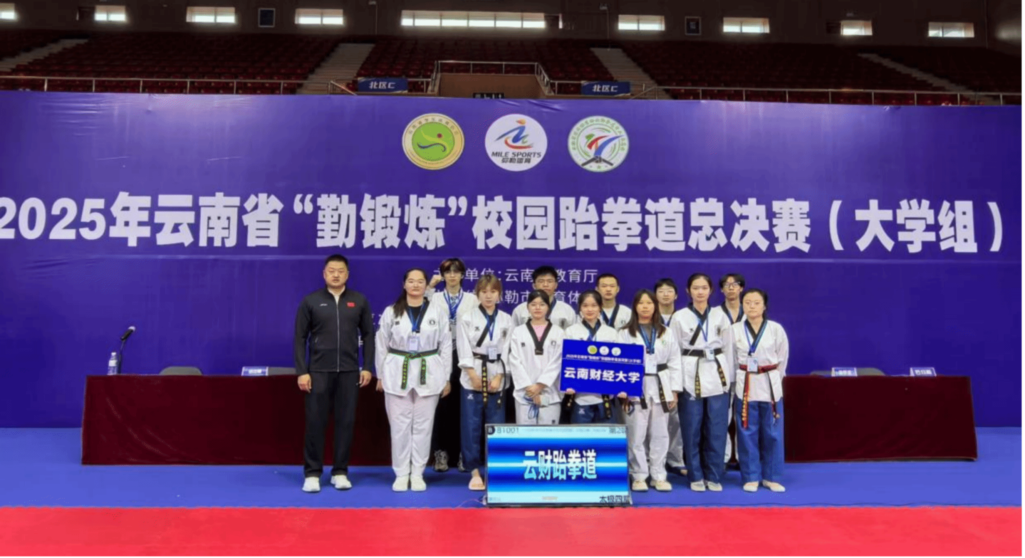 11月13日至17日,2025年云南省“勤锻炼”校园跆拳道总决赛(大学生组)在红河州弥勒市举行。买球跆拳道代表队共获得2枚银牌、3枚铜牌,并荣获“体育道德风尚奖”。