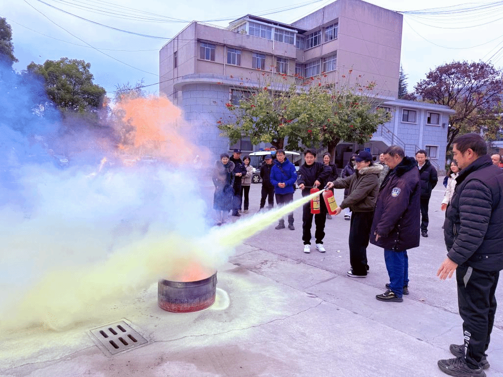 应急疏散演练环节,警报响起,全体参训人员迅速用湿毛巾等捂住口鼻,按预定路线有序撤离至安全区域。灭火器材实操环节,保卫处消防科工作人员现场示范了干粉灭火器的正确使用方法,参训员工分组进行油盆灭火实操,学习初期火灾扑救的基本技能。