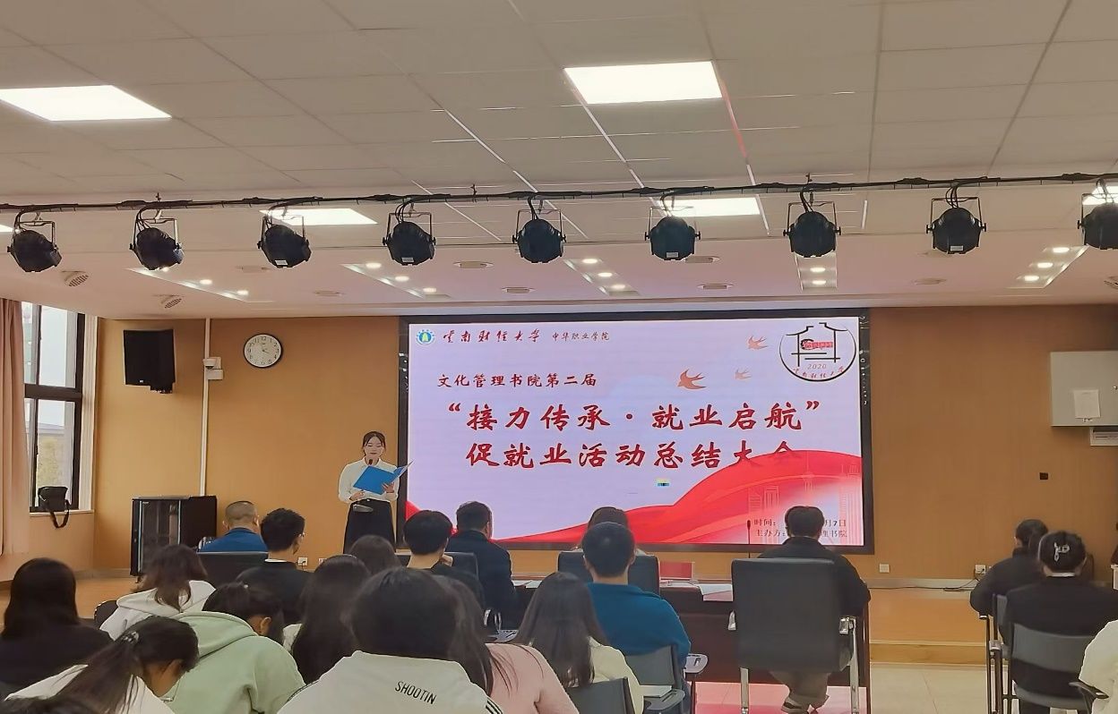 为引导书院“员工”在实战中汲取经验教训,更好地助力学院就业工作开展,提升自身求职就业能力,11月7日中午,中华职业学院文化管理书院在安宁校区修远楼204室举办第二届“接力传承·就业启航”促就业活动总结大会。学院党委书记保伟、就业与创业服务中心杨廷德、就业专干汤鸿彦、文化管理书院指导老师罗香玉及书院全体“员工”参加。