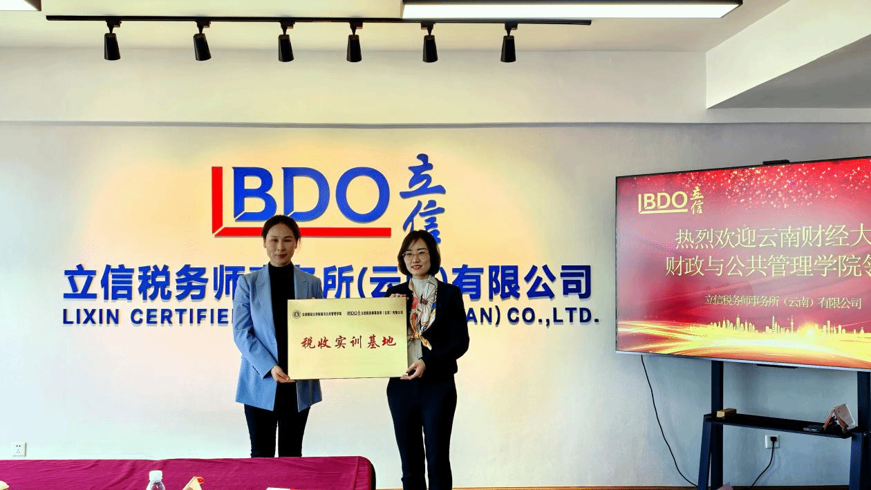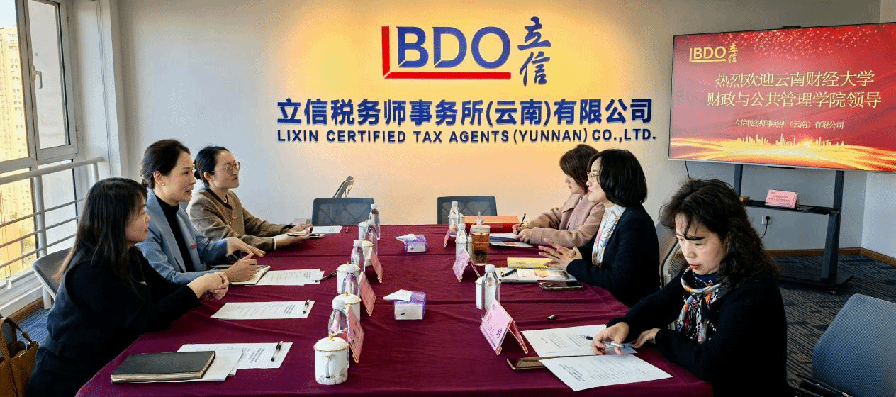 11月15日上午,财政与公共管理学院党委副书记王晓芬一行4人到立信税务师事务所(云南)有限公司进行财税实训基地签约挂牌,并开展访企拓岗交流。