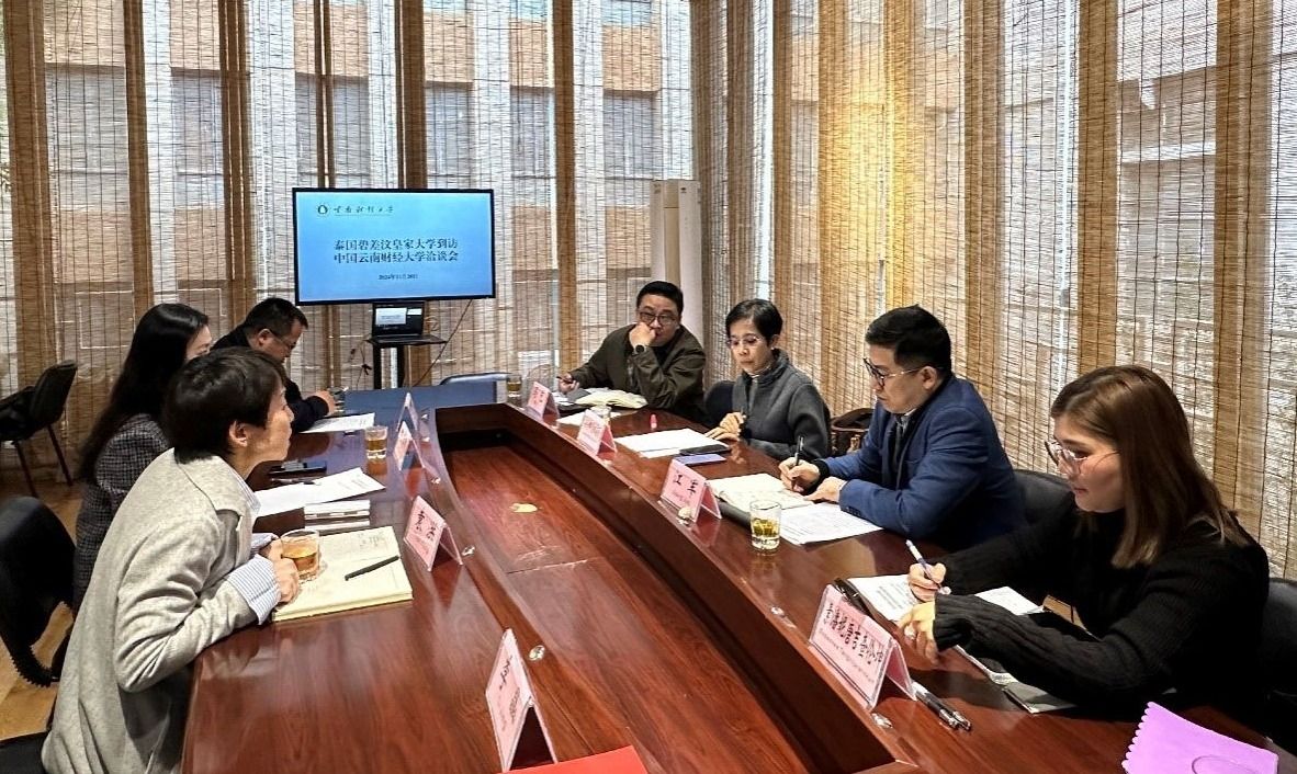 泰国碧差汶皇家大学国际学院院长江军教授、校办秘书长素潘妮·唐吉查伦坤女士、英语专业课程负责人安查娜·思拉翁丽副教授以及国际学院一带一路办公室主任刘鹏飞、曼谷商学院执行院长马艺,买球传媒与设计艺术学院院长袁洪、副院长李晶、外事专办员张慧娟参加会议。