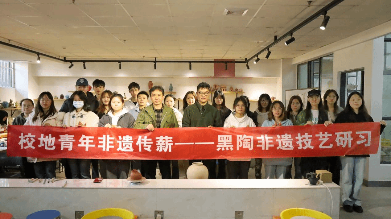 当天下午,黑陶非遗技艺研习活动在学院陶艺工作室进行。陶艺工作室侯蒙老师与迪庆州黑陶非遗传承人拉茸肖巴、苏子力老师共同为参与课程的同学授课并开展交流。