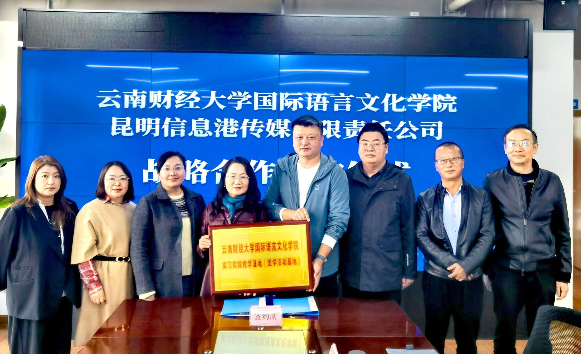 12月12日,国际语言文化学院院长刘代容、党委副书记俞虹、副院长孙婷婷、团委书记马婧一行到访昆明市融媒体中心昆明信息港,正式签署战略合作框架协议并开展访企拓岗活动,这标志着双方在国际传播、人才培养、学术交流、新媒体技术、学生就业实习等多个领域将展开深度合作。