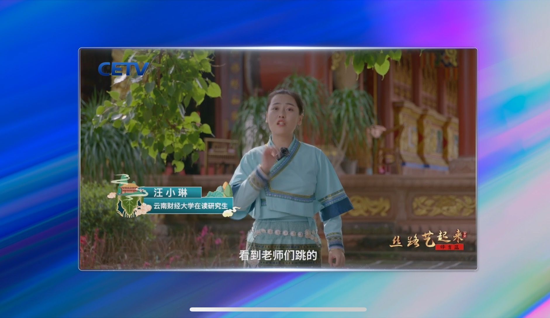 《丝路艺起来》是中国教育电视台的热播栏目,旨在通过大学生视角,探寻和体验“一带一路”沿线的民族民间体育和非遗文化艺术。买球师生团队创作的两部作品分别以普洱景谷县、楚雄牟定县作为主要拍摄地点,以学习和体验傣族传统象脚鼓制作和舞蹈表演,以及彝族民间左脚舞、“左脚调”的演绎为主要内容进行创作。传媒与设计艺术学院研究生汪小琳同学担任主持。