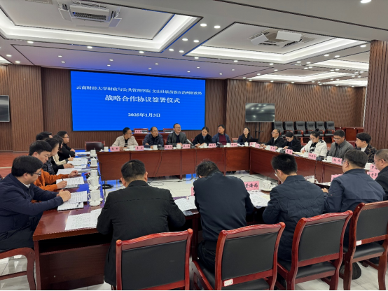 2025年1月3日,财政与公共管理学院与文山州财政局在文山举行战略合作协议签署仪式,学院院长缪小林和文山州财政局局长、州国有企业工委书记吴长明共同为在文山州财政局设立的“财政实践基地”揭牌。签约仪式由文山州财政局副局长杨友富主持。