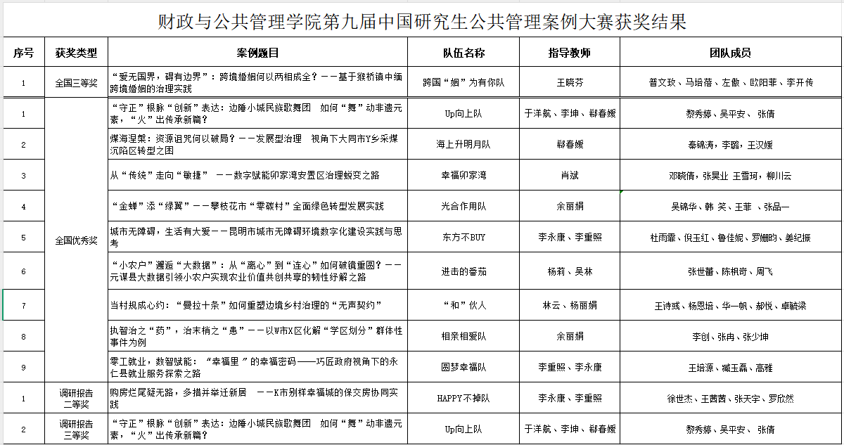 附:财政与公共管理学院第九届中国研究生公共管理案例大赛获奖结果