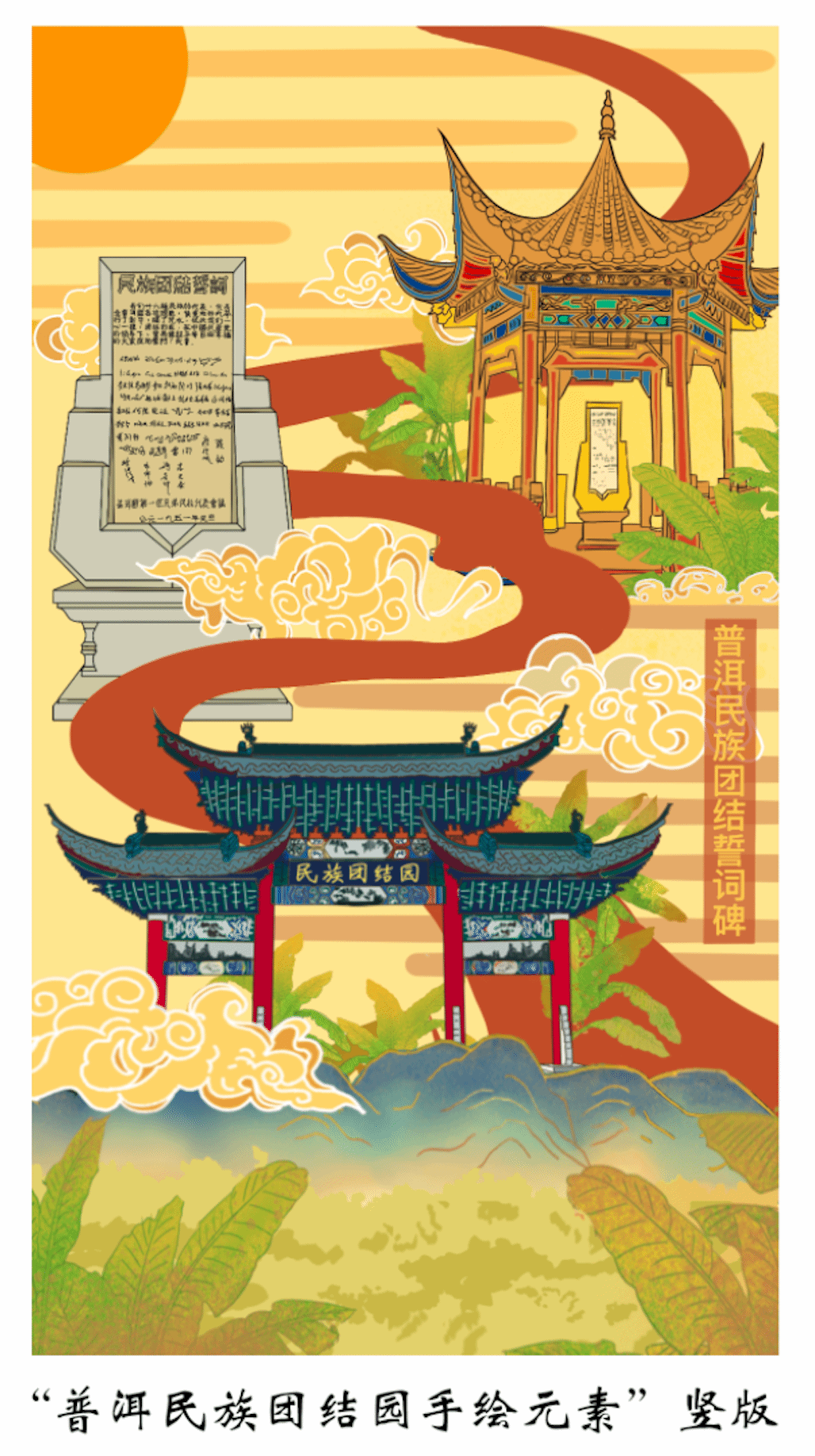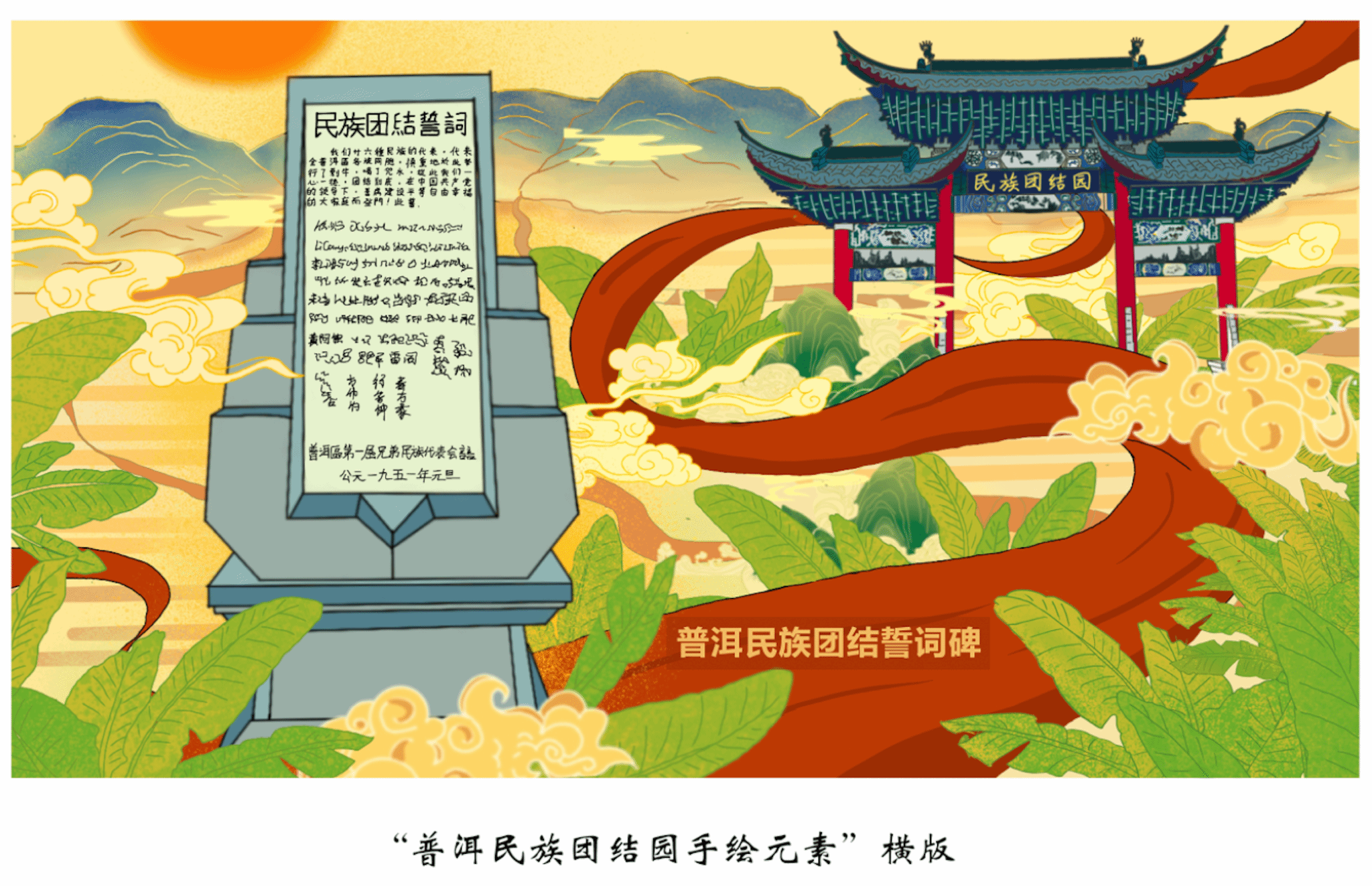 该作品聚焦位于云南省宁洱哈尼族彝族自治县的民族团结誓词碑,深刻展现其作为“新中国民族团结第一碑”和“新中国民族工作第一碑”的厚重历史意蕴。通过精心的视觉语言设计,作品生动呈现了新中国成立后,在中国共产党领导下,边疆各民族共同缔造的崭新社会主义民族关系,以及背后折射的民族团结精神。