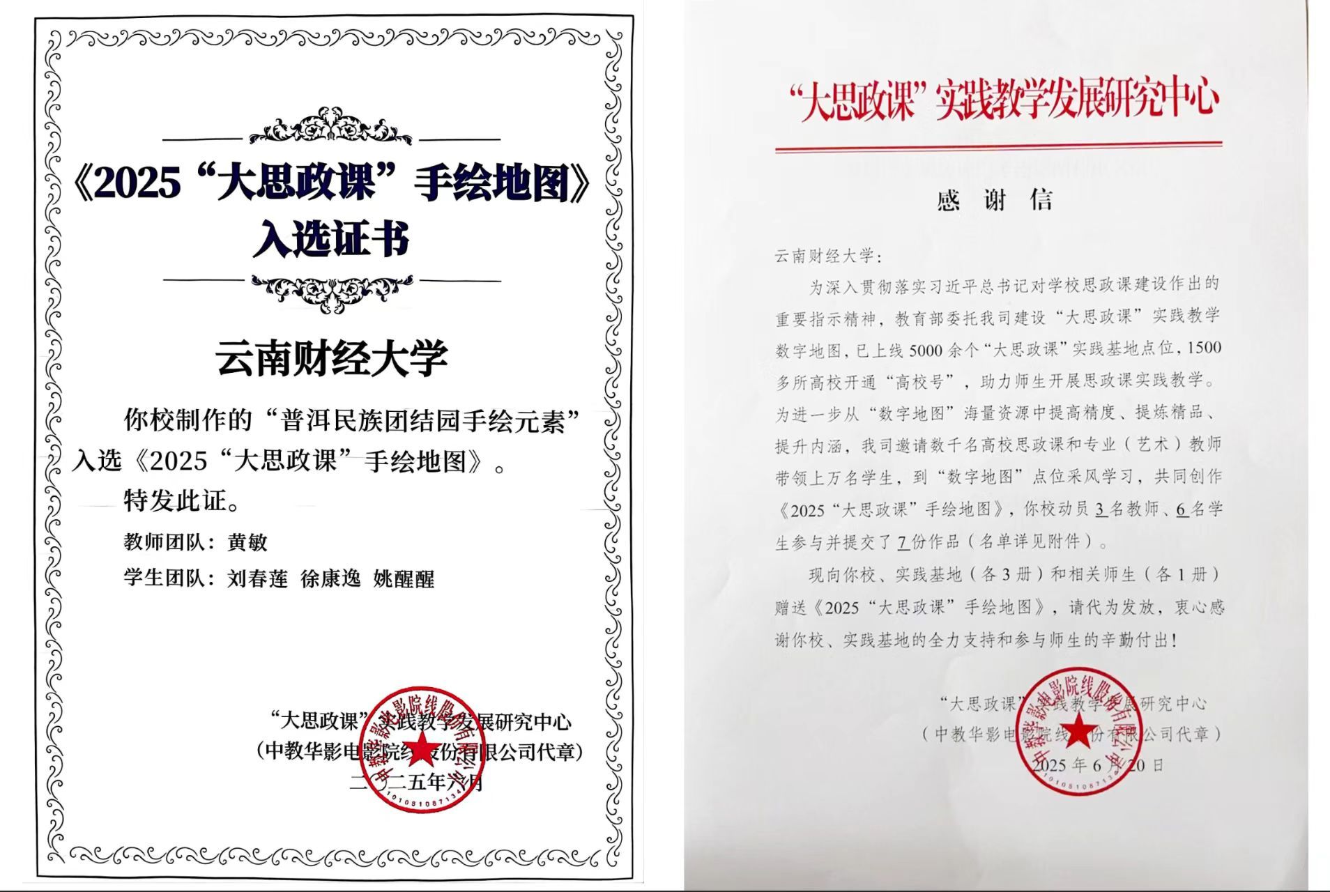 近日,教育部正式公布了《2025“大思政课”手绘地图》作品入选名单,买球传媒与设计艺术学院教师黄敏指导学生团队设计制作的作品“普洱民族团结园手绘元素”成功入选,充分体现了学校“大思政课”建设的育人成效。