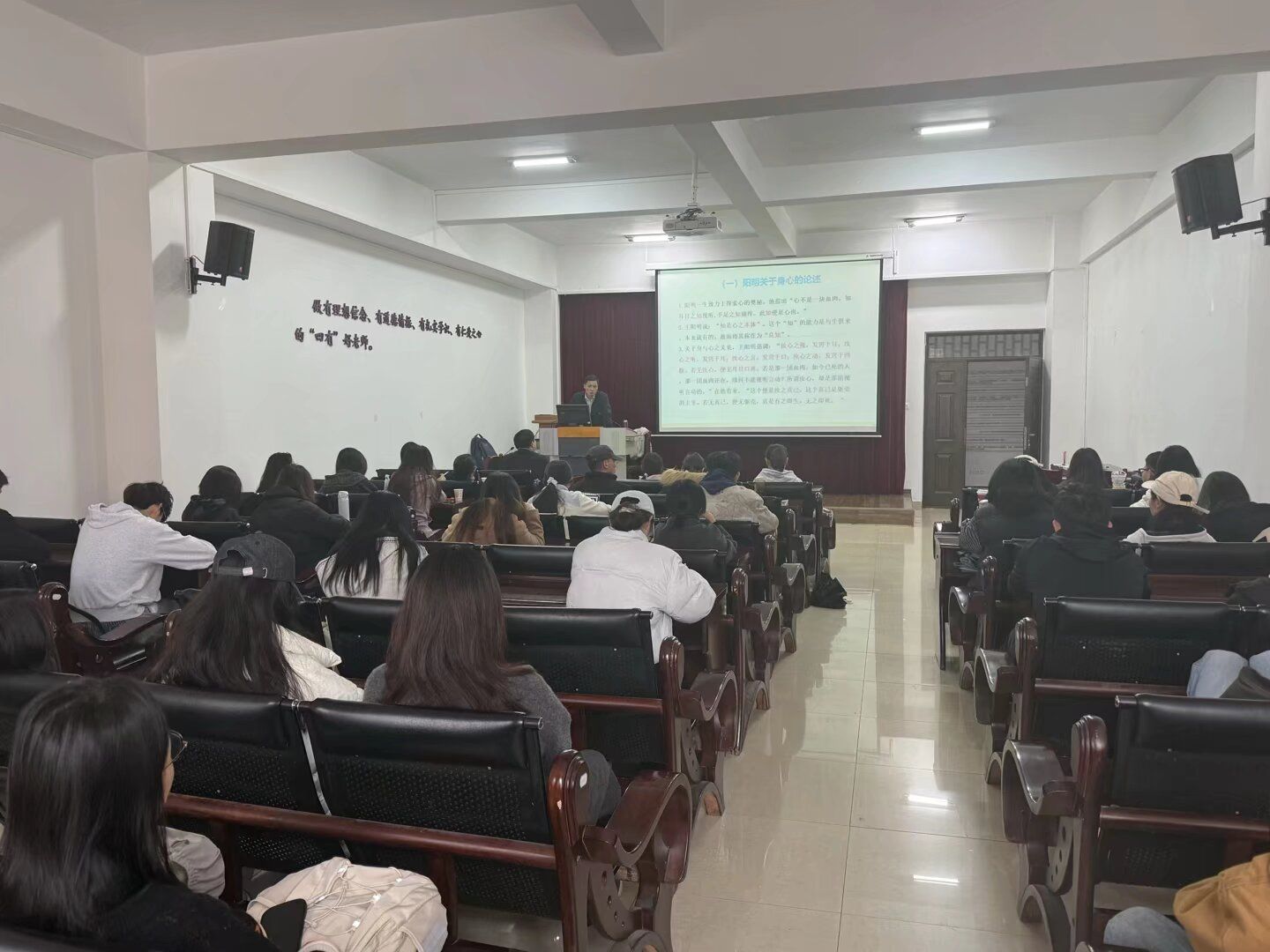 11 月 4 日上午,2025 云岭大讲堂(云财讲坛)第二讲在买球博远楼 103 会议室举行。云南大学文学院博士生导师谢青松教授受邀以“阳明心学与身心平衡”为题作分享,以帮助同学们应对快节奏生活带来的压力与焦虑。