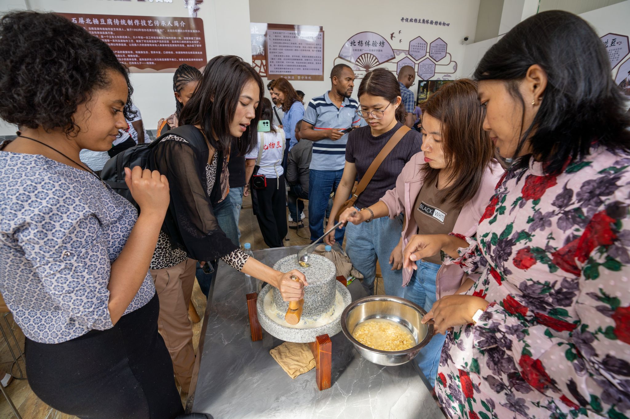 在石屏,学员参观考察了石屏工业园区、豆制品特色产业园区、豆腐文化产业园区和绿色食品精深加工园区。学员亲自体验从豆子加工成为豆浆、豆花、豆腐的生产过程。本次活动生动地向学员展示石屏县豆制品产业集群发展历程,展现中国在乡村振兴中的生动实践。