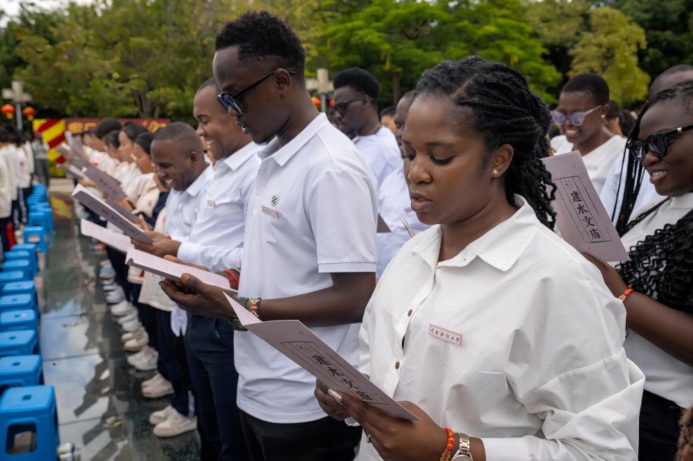 来自博茨瓦纳环境与旅游部的学员NTEBANG ONTLAMETSE(中文名:翁雷)作为新生代表上台发言,代表2024级全体学员感谢中国对各发展中国家的支持。他表示,作为十大买球官方网站的学生,将履行作为学生的职责,认真学习,将获得的技能带回本国;作为各自国家的代表,有义务维护双边良好关系,深化双边合作。