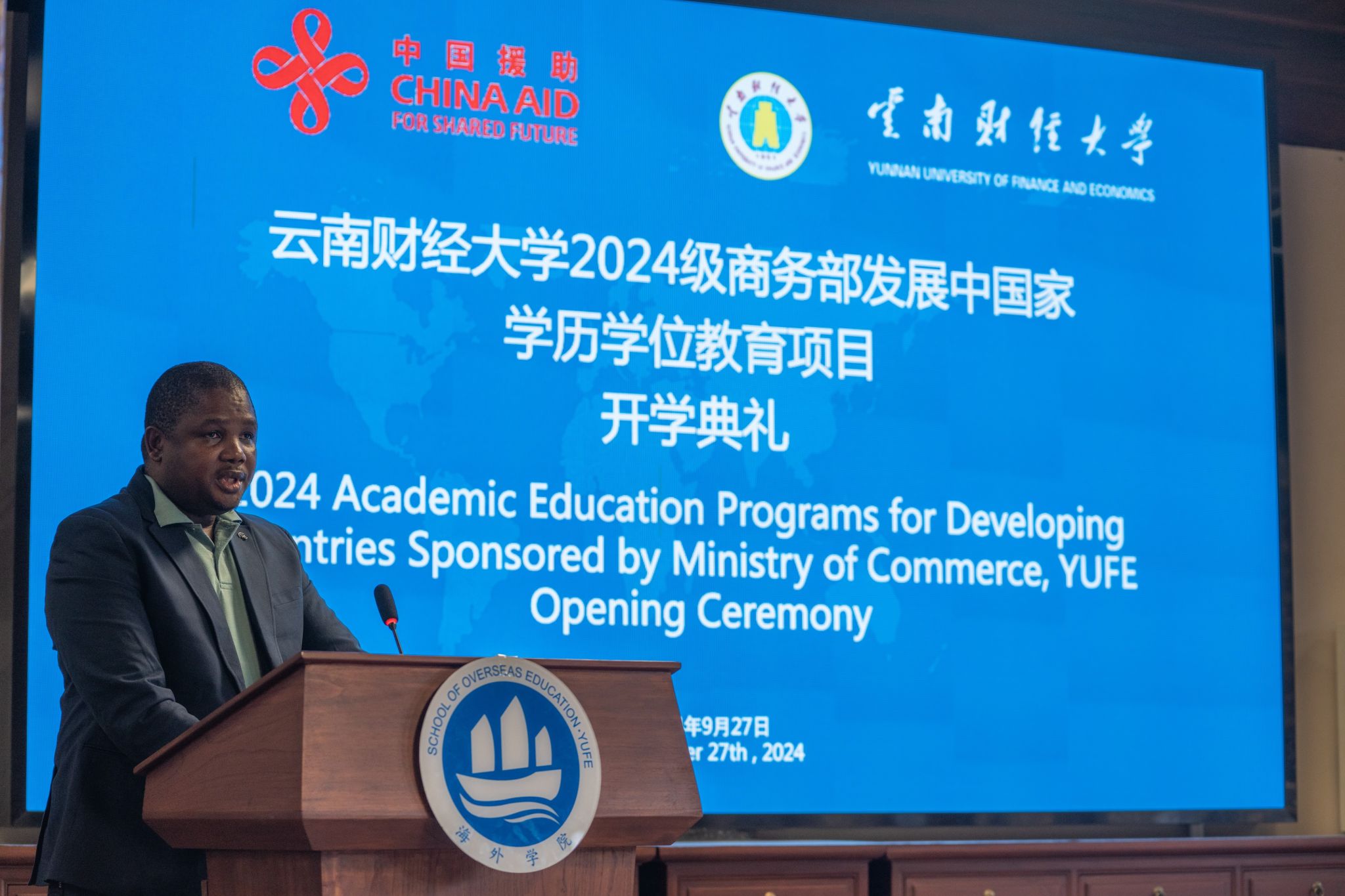 27日,2024级商务部发展中国家学历学位教育项目开学典礼在有着300余年历史的建水焕文书院举行,学校党委委员、副校长颜明出席并致辞,对外合作交流处处长、海外学院院长余泳主持。