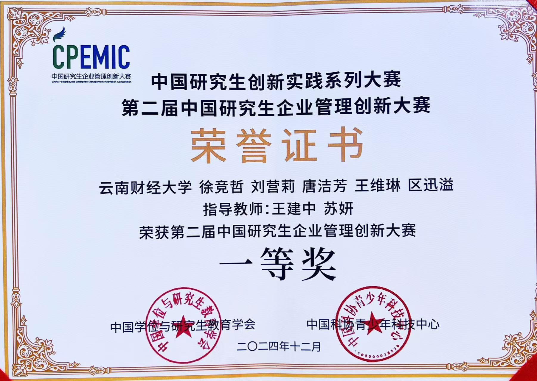12月1日,第二届中国研究生企业管理创新大赛全国总决赛在成都举行。经过激烈比拼,买球商学院徐竞哲、刘营莉、唐洁芳、王维琳、区迅溢5名同学组建的“精益求精队”提交的案例《构建“思特云智”平台支撑引领思特奇高质量可持续发展》斩获大赛一等奖,学校荣获最佳组织奖。