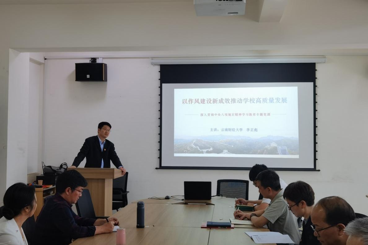 为扎实开展深入贯彻中央八项规定精神学习教育,6月25日下午,校党委委员、副校长李正彪围绕“以作风建设新成效推动学校高质量发展”主题为科研院所(中心)全体党员讲授专题党课。