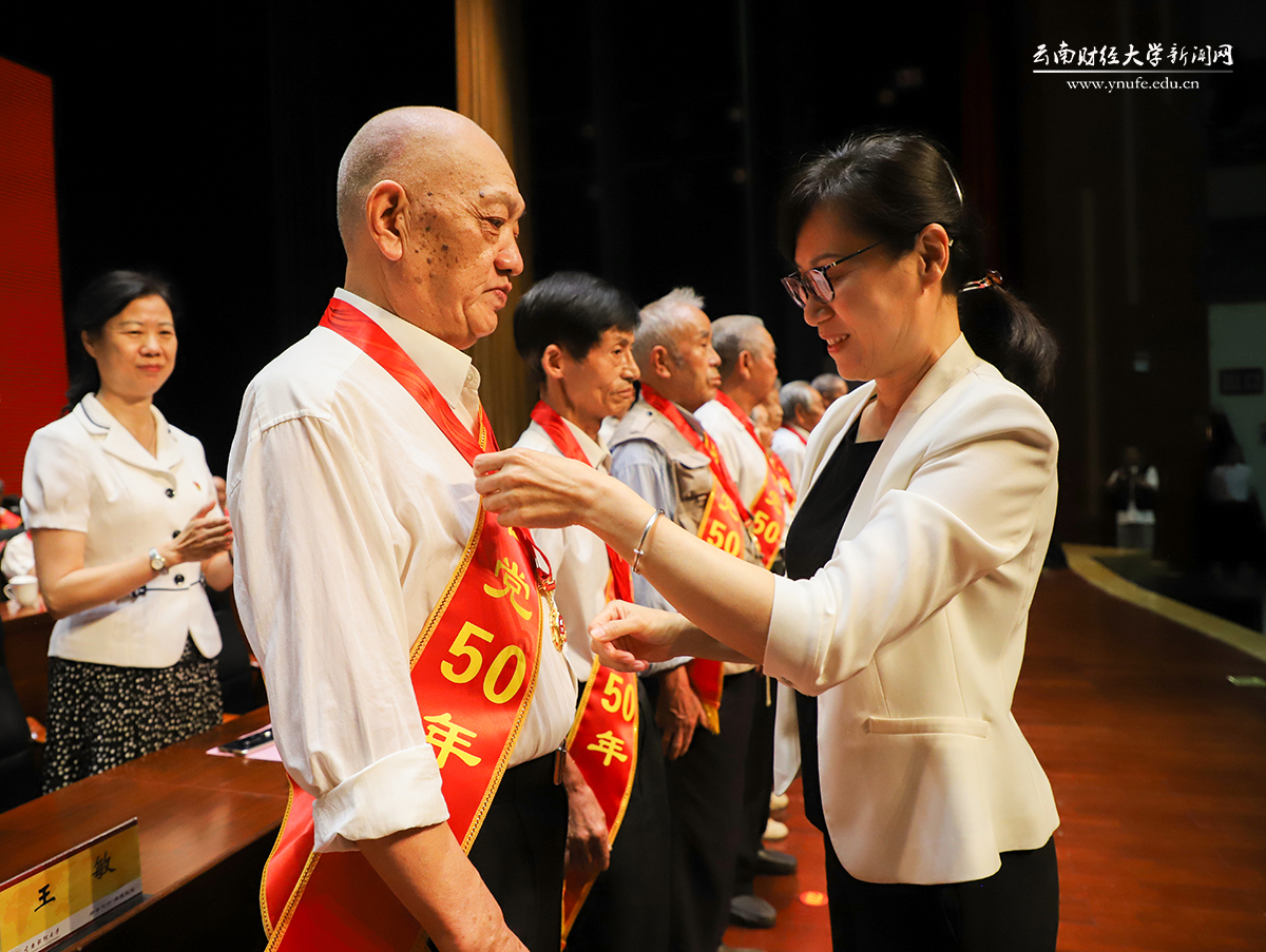 “今天我们和广大的青年党员重温入党誓言,是再一次叩问初心,激励使命,把初心和使命变成埋头苦干、真抓实干的原动力。”王建颖代表学校党委向“光荣在党50年”的老党员,受到表彰的优秀个人、先进党组织和新党员表示祝贺,对全体党员提出五点要求: