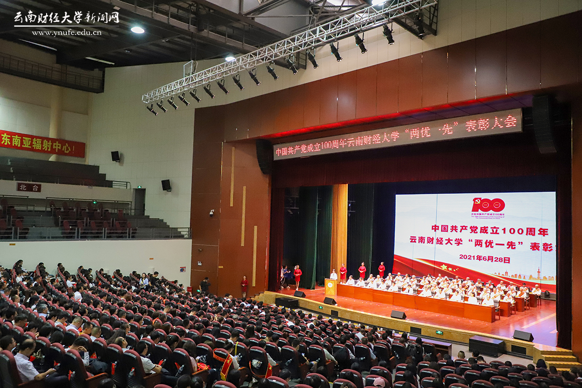 校党委书记王建颖在表彰大会上讲话,表彰大会由校党委副书记、校长伏润民主持。校党委副书记谢昌浩宣读表彰决定。学校党委委员,“光荣在党50年”纪念章获得者代表出席表彰大会并在主席台就坐。云南省、云南省教育系统及学校“两优一先”获奖个人及党组织负责人,校纪委委员,各二级党组织书记、副书记,各党支部书记,2021年上半年入党的新党员代表,师生党员代表,学校各民主党派和无党派代表参加大会。