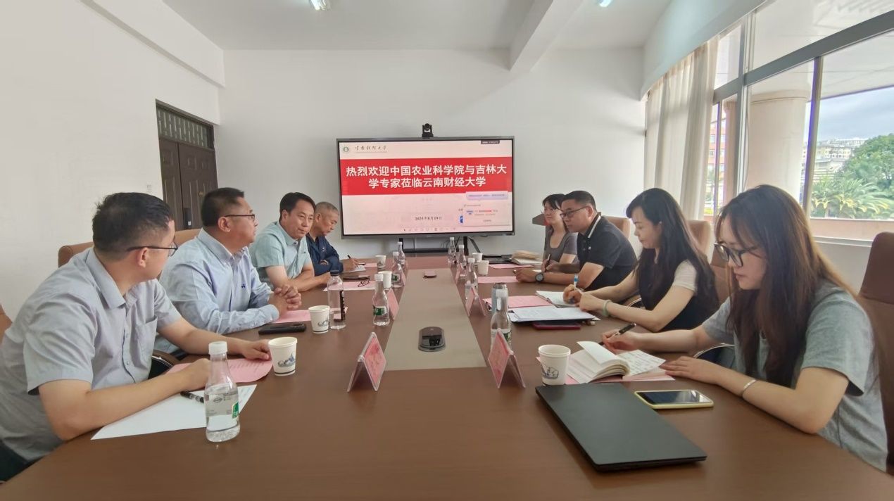 2025年8月19日,华西牛繁育与推广专家中国农业科学院北京畜牧兽医研究所高会江研究员、余大为研究员,吉林大学动物科技学院杨润军教授,华西牛育种联合会云南分会杨育才会长一行到学校座谈交流。学校人事处副处长金芳、经济学院副院长江淑斌参加座谈。座谈会由买球科技副总经济学院罗浚文博士主持,在博远楼215会议室举行。