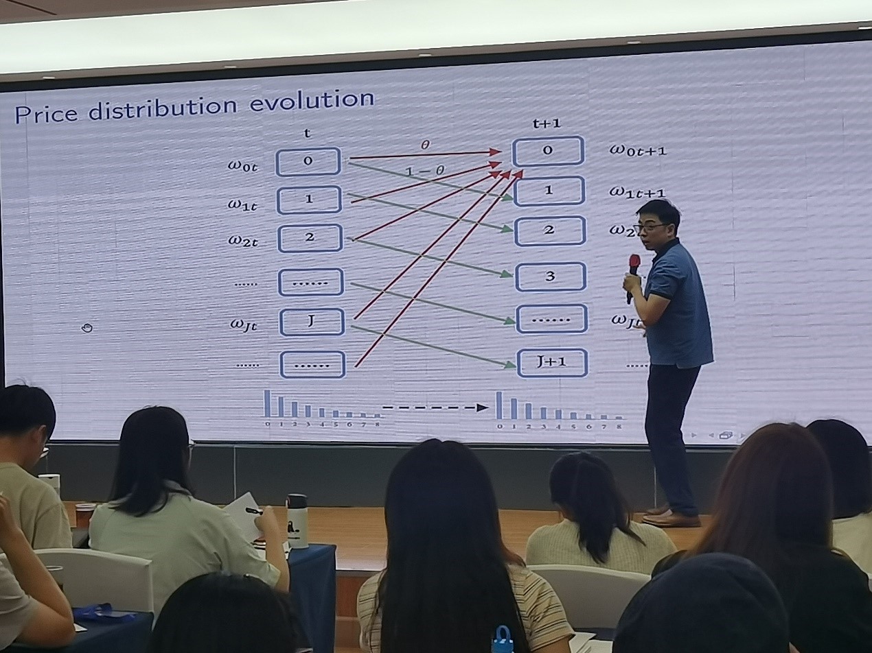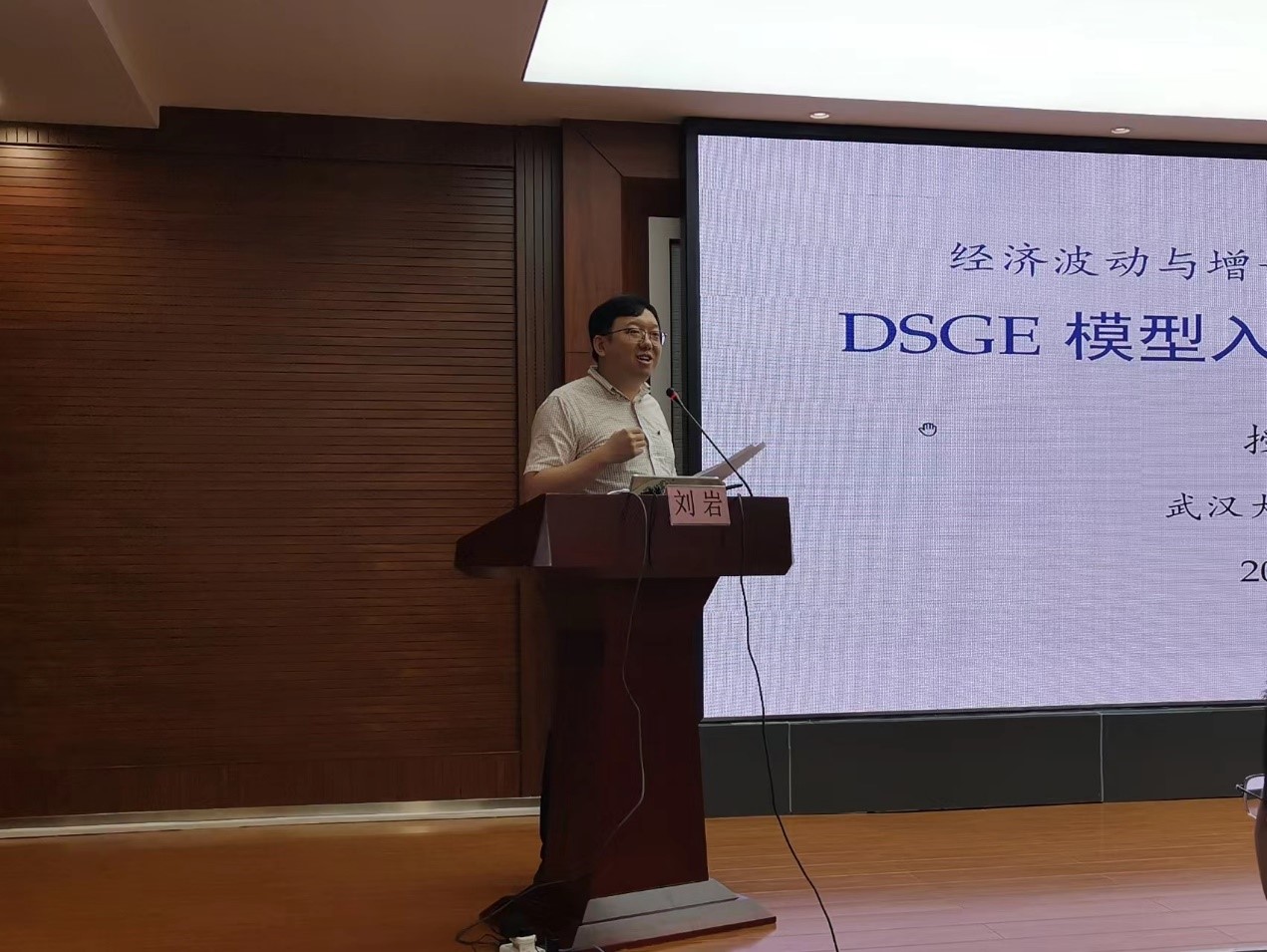 随后,中国人民大学财政金融学院李戎副教授进行了主题为动态优化基础的课程讲授。7月4日下午,武汉大学经济与管理学院刘岩副教授向学员们介绍了DSGE模型入门和对数线性话的方法。