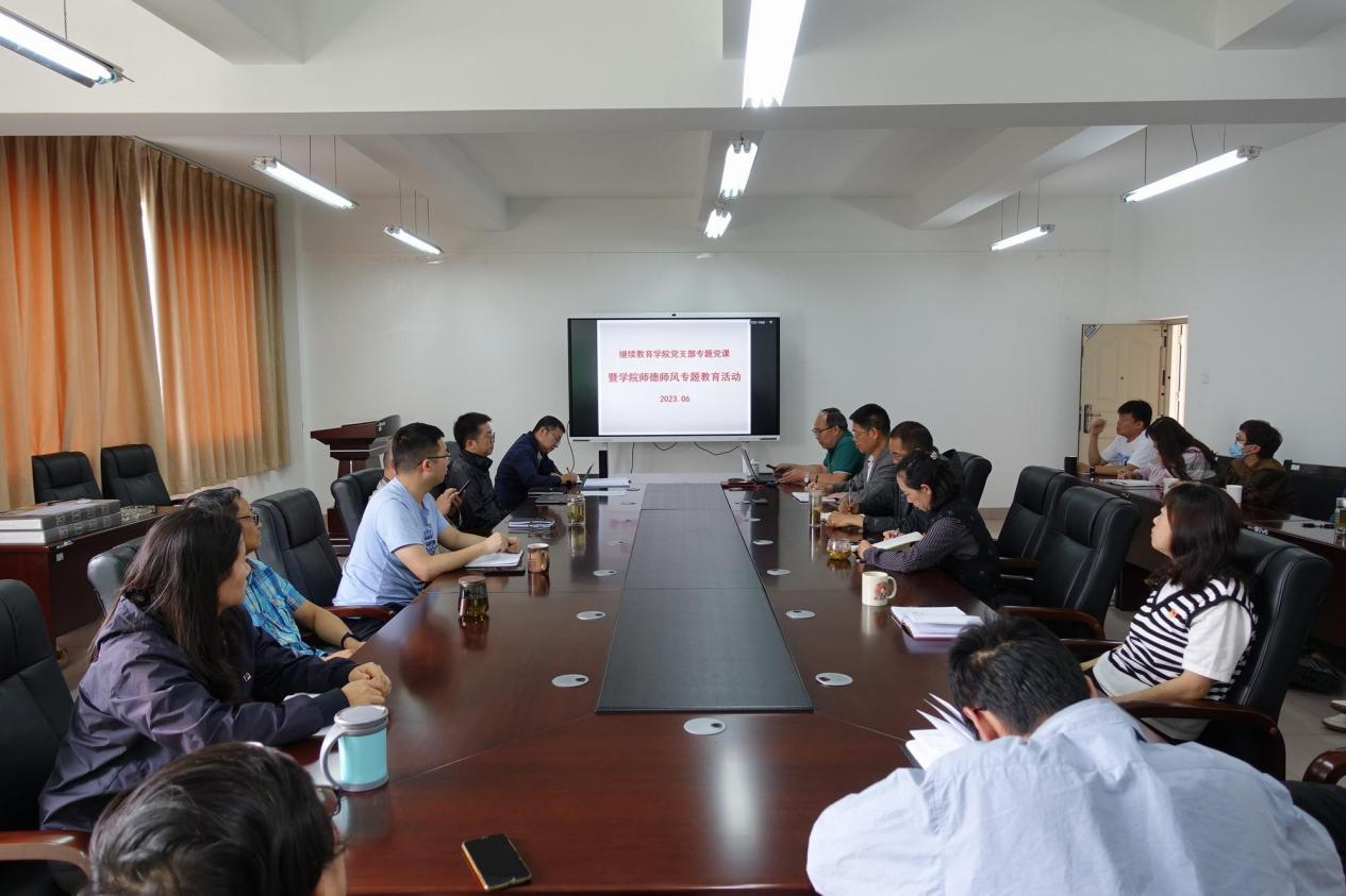 6月13日上午,继续教育学院举办党支部专题党课暨学院师德师风专题教育活动。党支部书记金国兴主持会议,学院全体教职工参加学习。