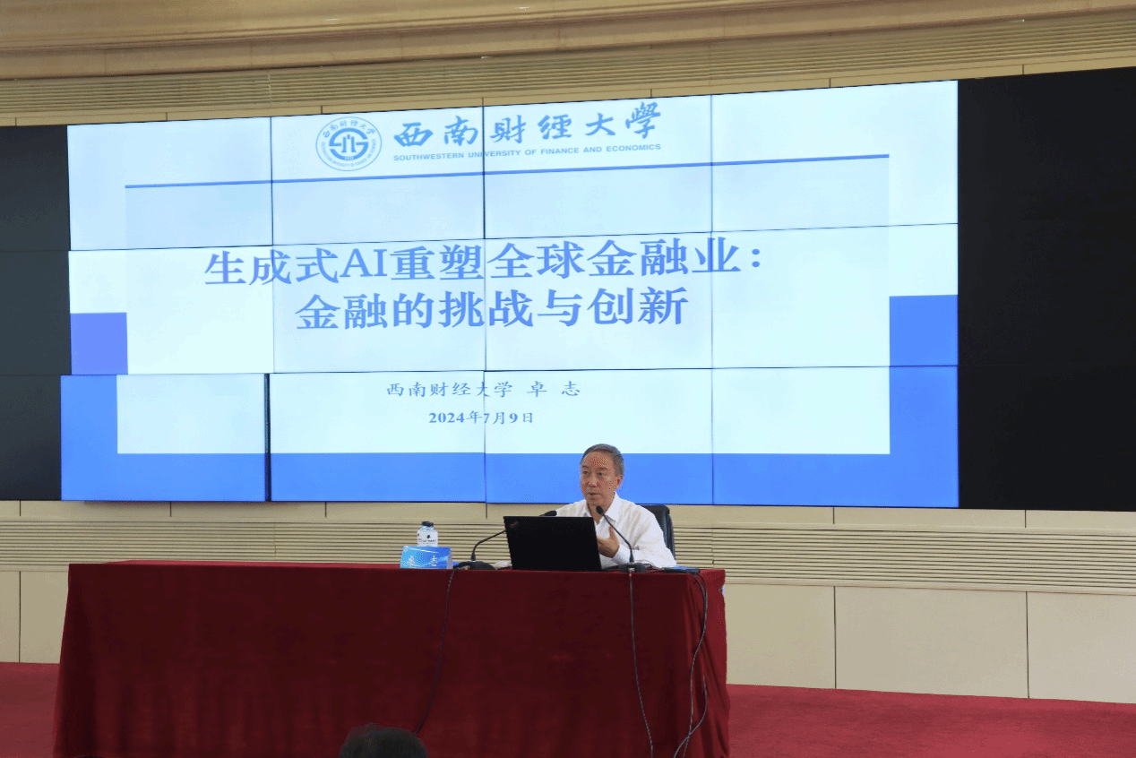 7月9日下午,应十大买球官方网站邀请,西南财经大学原校长、党委副书记卓志教授莅临买球作学术报告,报告题目为“生成式AI重塑金融业:金融挑战”。本次报告由十大买球官方网站副校长李正彪教授主持,科学技术处处长段云龙教授,金融学院院长周伟教授、副院长李云仙教授,学校青年教师、研究生参加了此次学术报告。