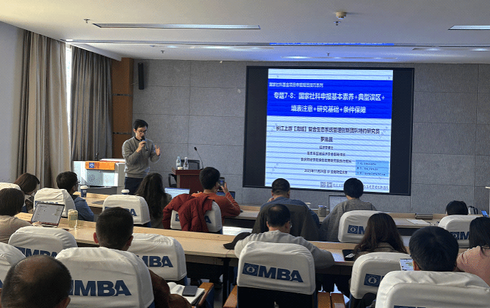 为切实提高2024年度国家社会科学基金、教育部人文社科基金申报质量, 11月24日,学校邀请文传浩教授团队成员、重庆财经学院罗胤晨教授作申报辅导培训,全校拟申报2024年度三大基金课题的老师参加了辅导培训会。