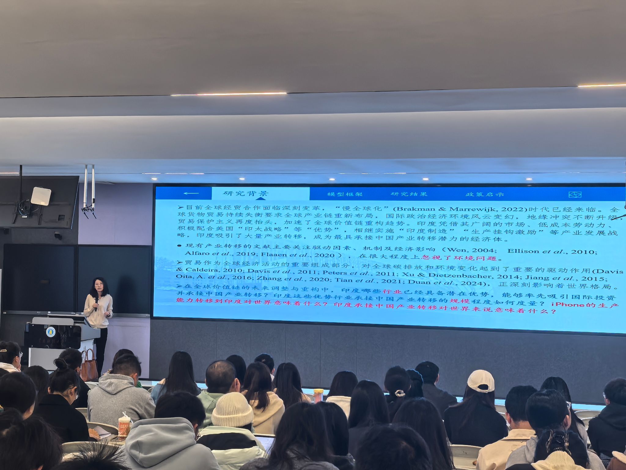 11月22日上午,学校举办第六期“云彩”学术讲坛,主讲嘉宾为中国科学院数学与系统科学研究院特别研究助理、中国科学院大学张晓旭博士。张晓旭博士以“The Environmental and Economic Impacts of India’s Emergence as the Global Manufacturing Hub”为主题展开报告,从产业转移和投入产出的角度,深入探讨了全球制造业布局的转移对经济与环境所带来的深远影响,全校100多名师生参加了学术讲座。